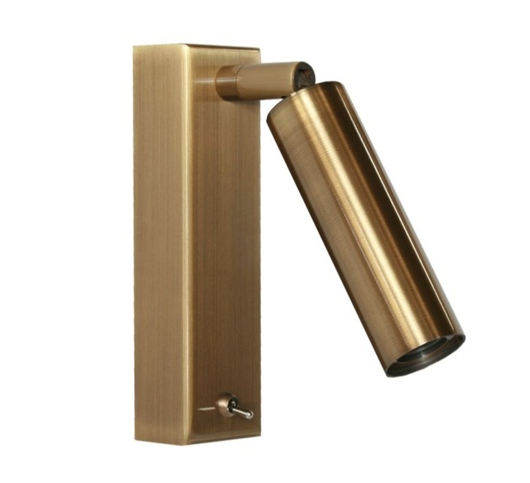 Wall reading lamp, Vortex 2W on ball joint and hook, matte-finish patinated brass, LED, 2700K, 190 lm, W4.3cm, H14.5cm - Tekni Led