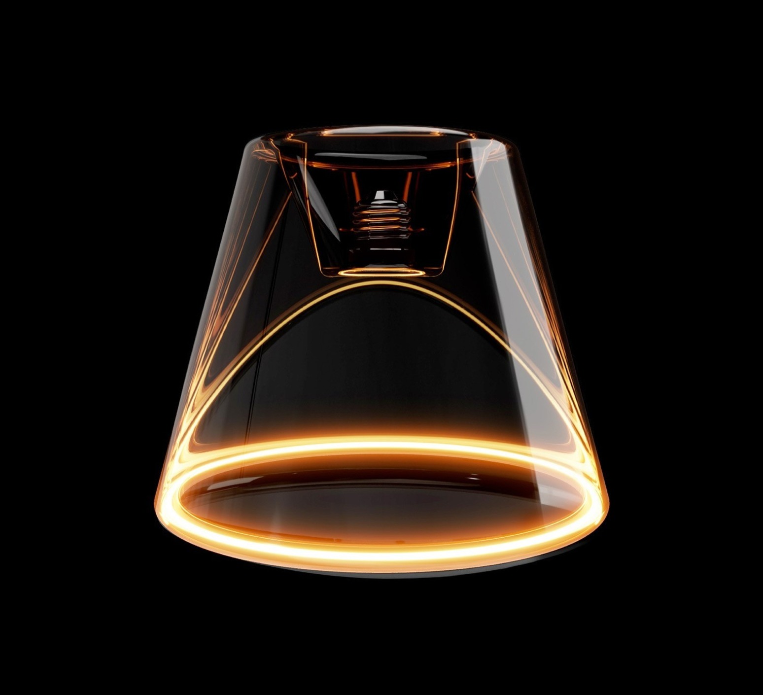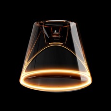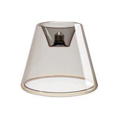 Con su forma cónica de cristal ahumado, difunde un halo suave y etéreo, al tiempo que causa un impacto visual impactante. Su cálida potencia luminosa de 1900 K (equivalente a la llama de una vela) envuelve los espacios en una atmósfera íntima y elegante.