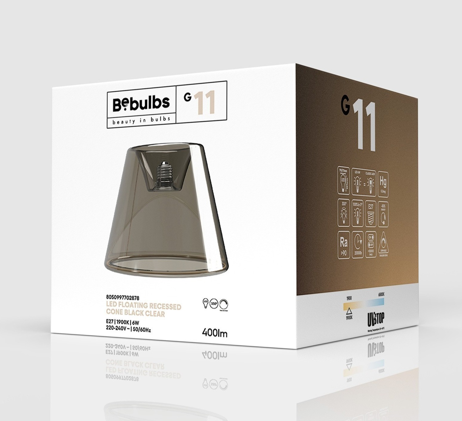 Bombilla LED, E27, Ghost Line Empotrable Cono G11, ahumada, dim. 6W, 2200K, 400 lm, Ø19cm, H15cm - Creative Cables