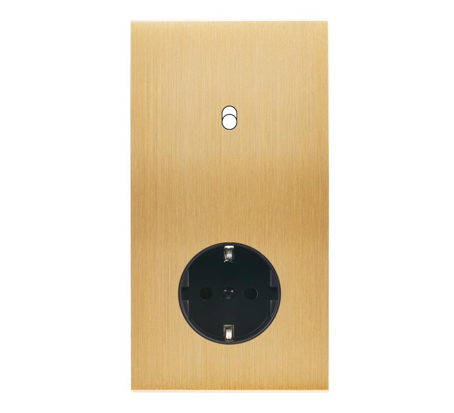 Panel frontal, Confianza, Doble vertical, Latón cepillado, Interruptor x1, Enchufe Schuko x1, An8cm, Al15,1cm - Modelec