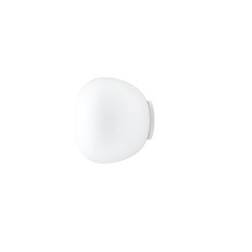 El aplique/plafón Lumi Mochi F07 de Fabbian, diseñado por Alberto Saggia & Valerio Sommella, presenta un difusor de vidrio soplado blanco opalino con un diseño suave y orgánico.