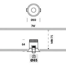 El proyector Optik 1 cuenta con una fuente LED de 3000K y 766 lúmenes. Mide 6,9 cm de diámetro y 6,4 cm de altura. Incluye driver. No regulable.