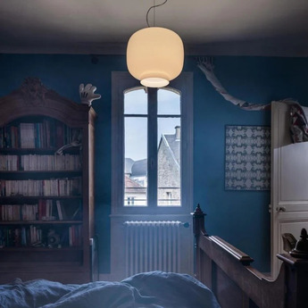 Chouchin 3 LED destaca por su juego de contrastes entre el vidrio soplado lacado y el blanco, ofreciendo una estética moderna y elegante. Su diseño cilíndrico compacto y su suave color blanco lo convierten en un elemento versátil para diferentes composiciones decorativas. Este colgante puede utilizarse solo para un toque minimalista o en grupo para crear un efecto visual impactante.