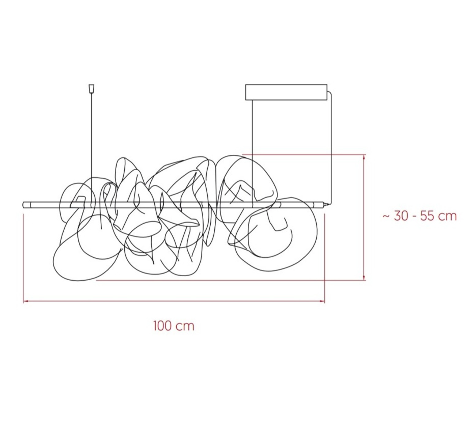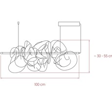 El colgante Cloud lleva integrado un LED regulable (compatible con 0-10 V) con una temperatura de color de 2700K. Mide 100 cm de longitud y 55 cm de altura.