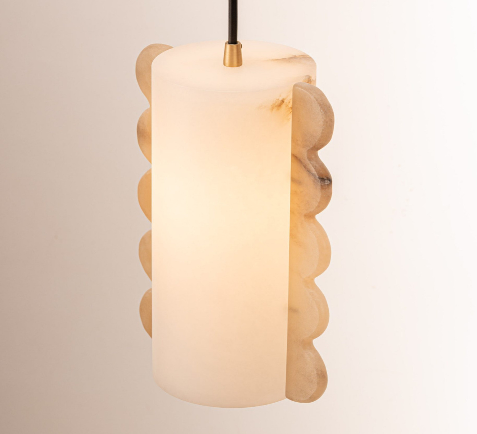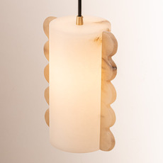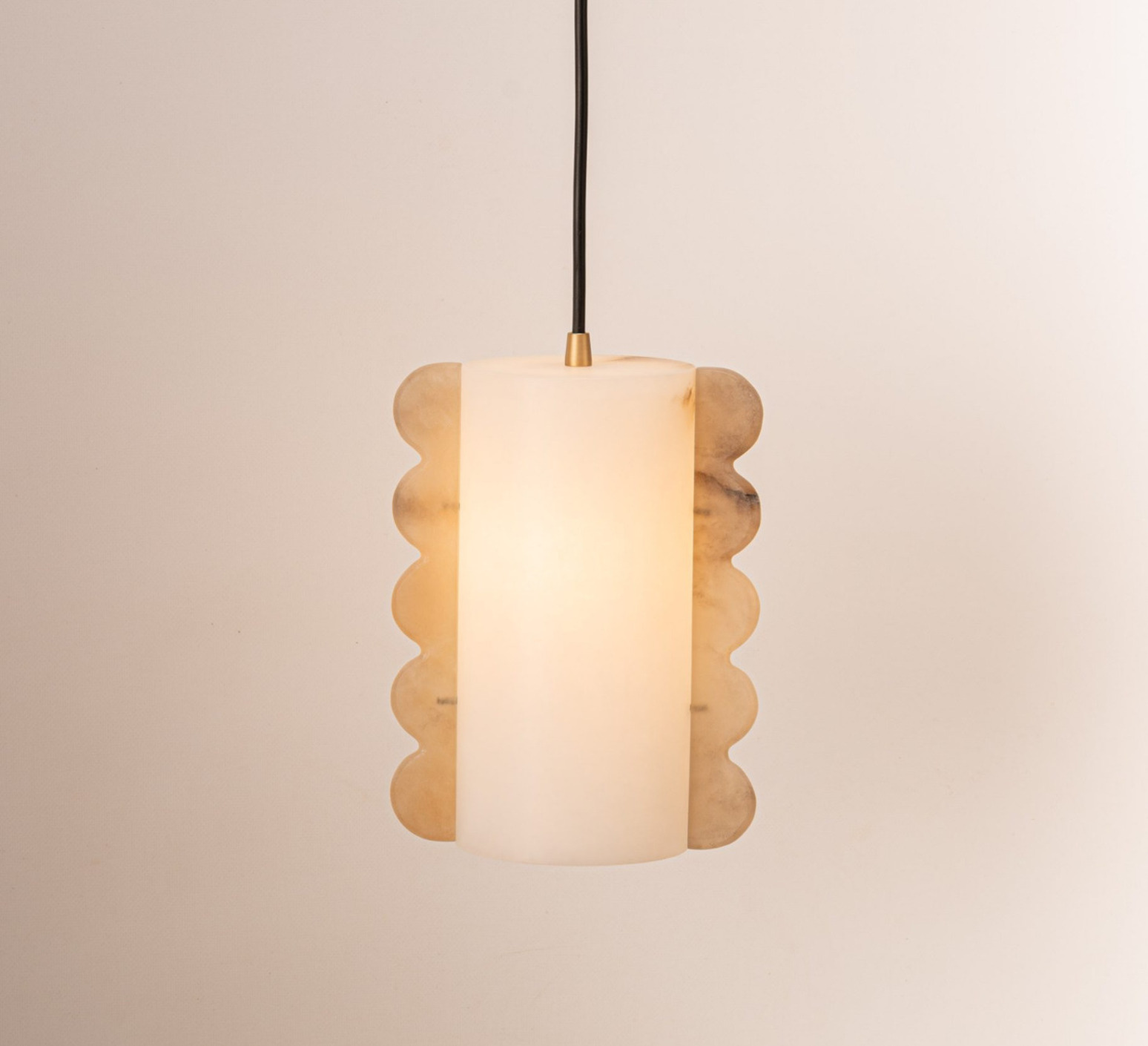 Su estética mineral y su forma cilíndrica le confieren una presencia suave y gráfica. El alabastro difunde una luz uniforme de 360°, ideal para crear un ambiente cálido en un salón, un pasillo o sobre una mesa. El cable negro regulable de 2,5 m permite instalarla en cualquier proporción, sea cual sea el tamaño de la habitación.
