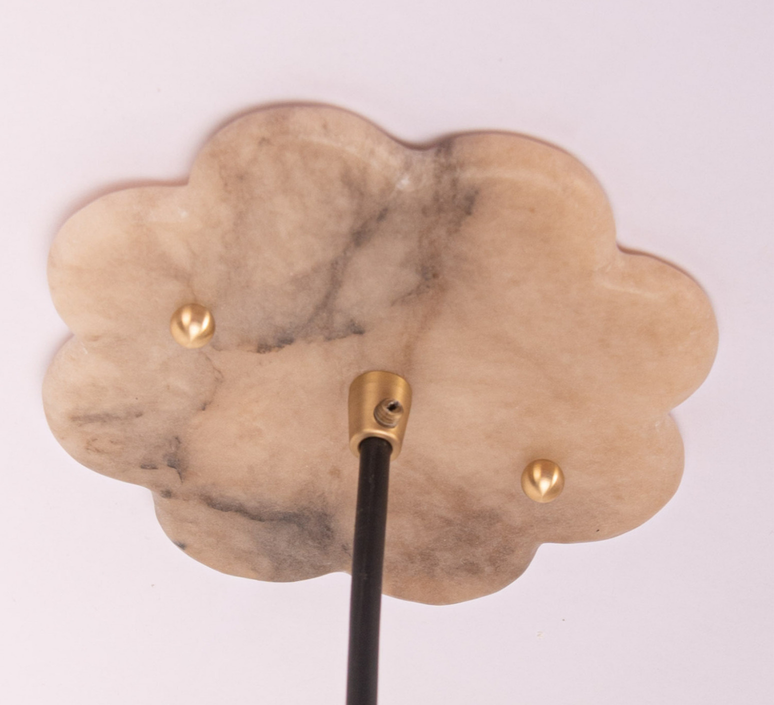 Esta exclusiva pieza presenta una pantalla de alabastro blanco, enmarcada por dos alas festoneadas de alabastro tabaco que le confieren su identidad distintiva.