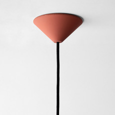 Fabricada a mano en Italia, esta lámpara colgante de hormigón coloreado presenta un sutil y cálido acabado en rojo oriental, ideal para añadir un elegante toque decorativo a un interior moderno.