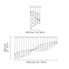 Mide aproximadamente 120 cm de largo, 40 cm de fondo y 170 cm de alto, lo que le confiere una presencia generosa en cualquier espacio. Etourneaux XL está equipada con módulos LED integrados que producen aproximadamente 950 lúmenes de luz blanca cálida a 3000 K, con driver incluido.