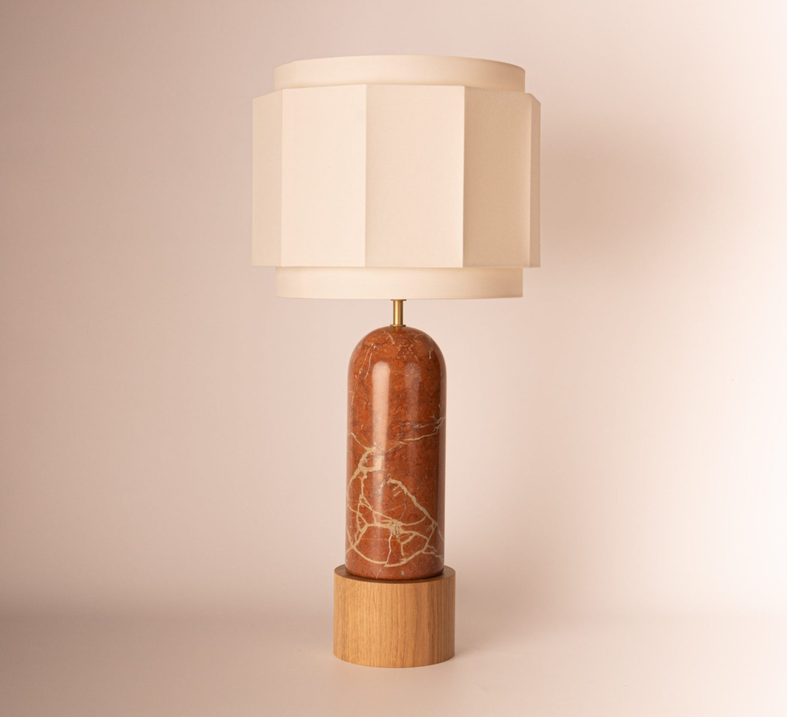 Lámpara de mesa, Pura Kelo Okla, Mármol rojo, pantalla de algodón, base de madera de roble, Ø35cm, H69cm - Simone & Marcel
