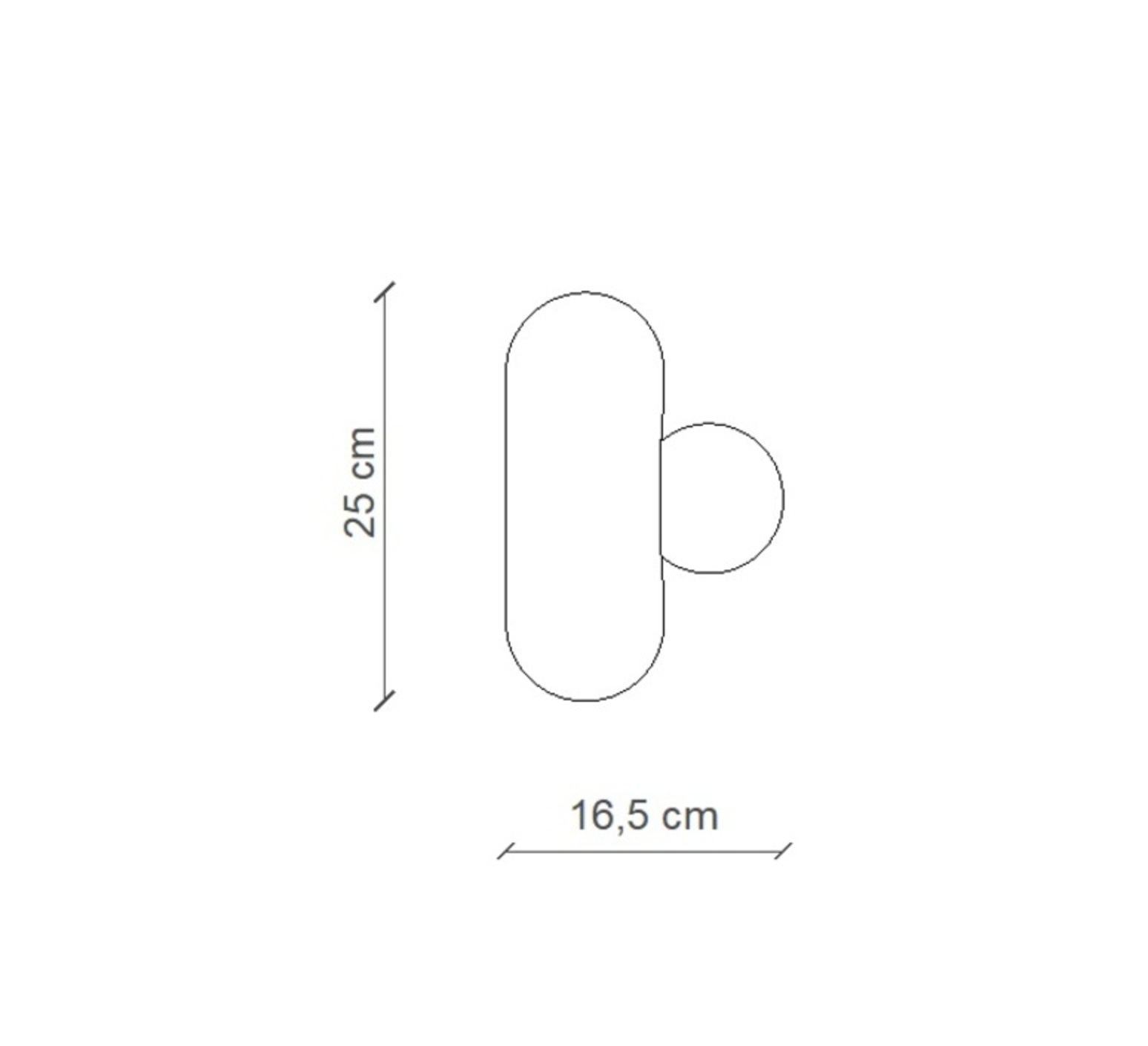 El aplique mide 25 cm de diámetro y 16,5 cm de profundidad. La fuente de luz no está incluida. Recomendamos una bombilla G9 de 25 W como máximo.