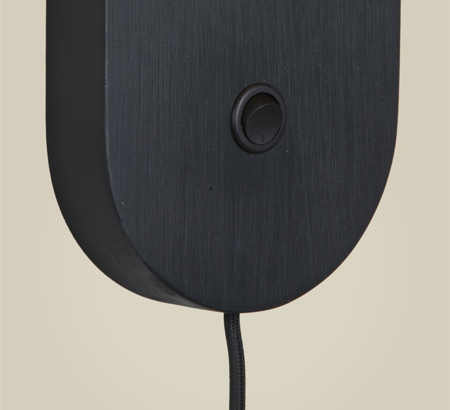 El aplique Java mide 12,5 cm de ancho y 30 cm de alto, con un cable de 2 m en color negro. Difunde una suave luz de 360° y no incluye fuente de luz. Recomendamos una bombilla LED GU10 de 6 W como máximo.