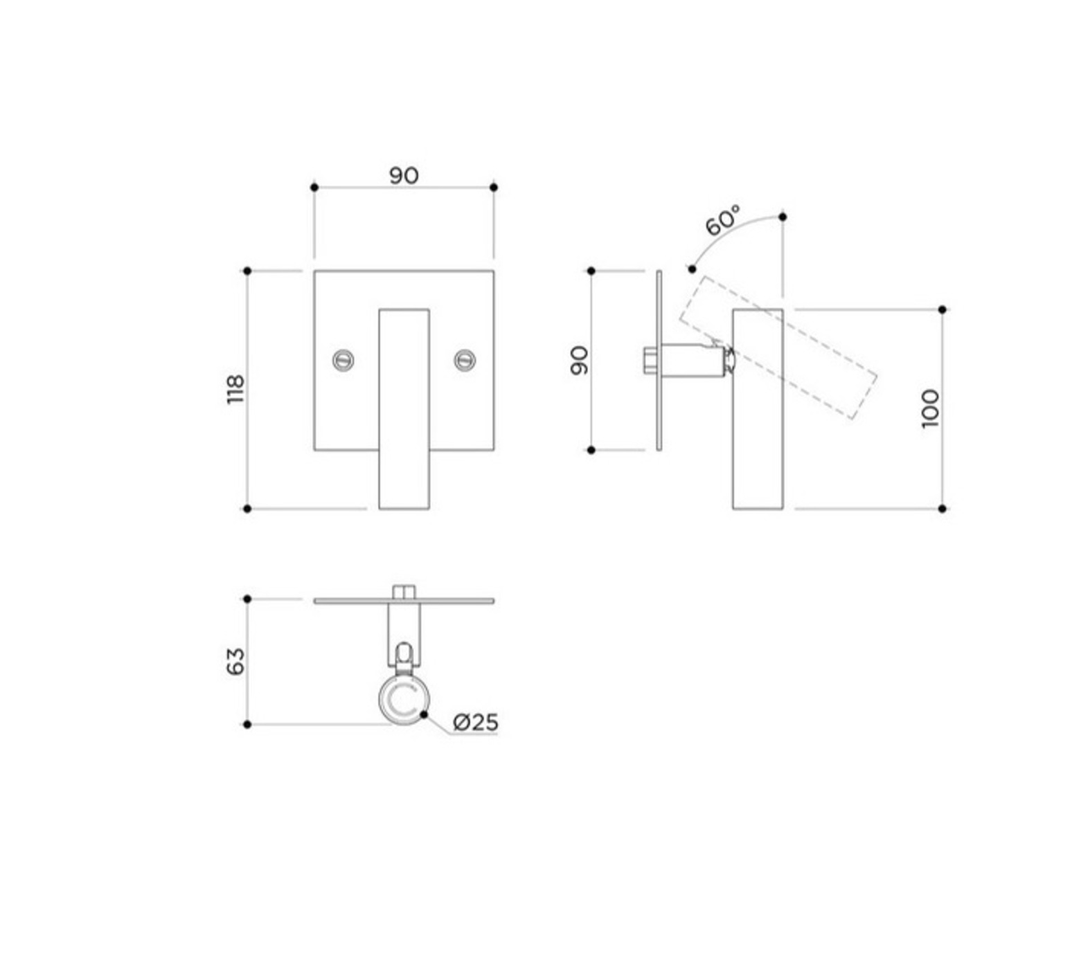 El tubo cilíndrico ajustable mide 10 cm de alto y 2,5 cm de diámetro. La altura total de la luminaria es de 11,8 cm.