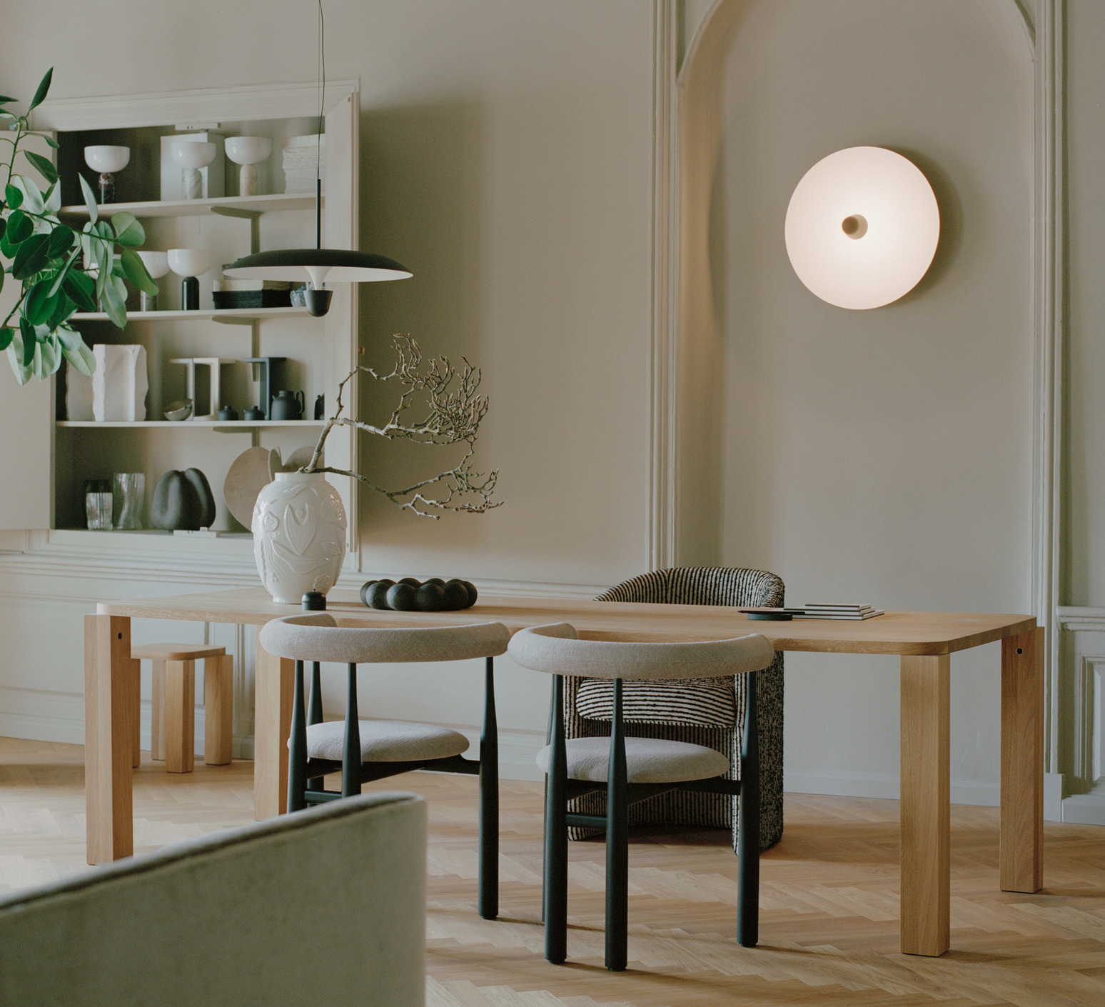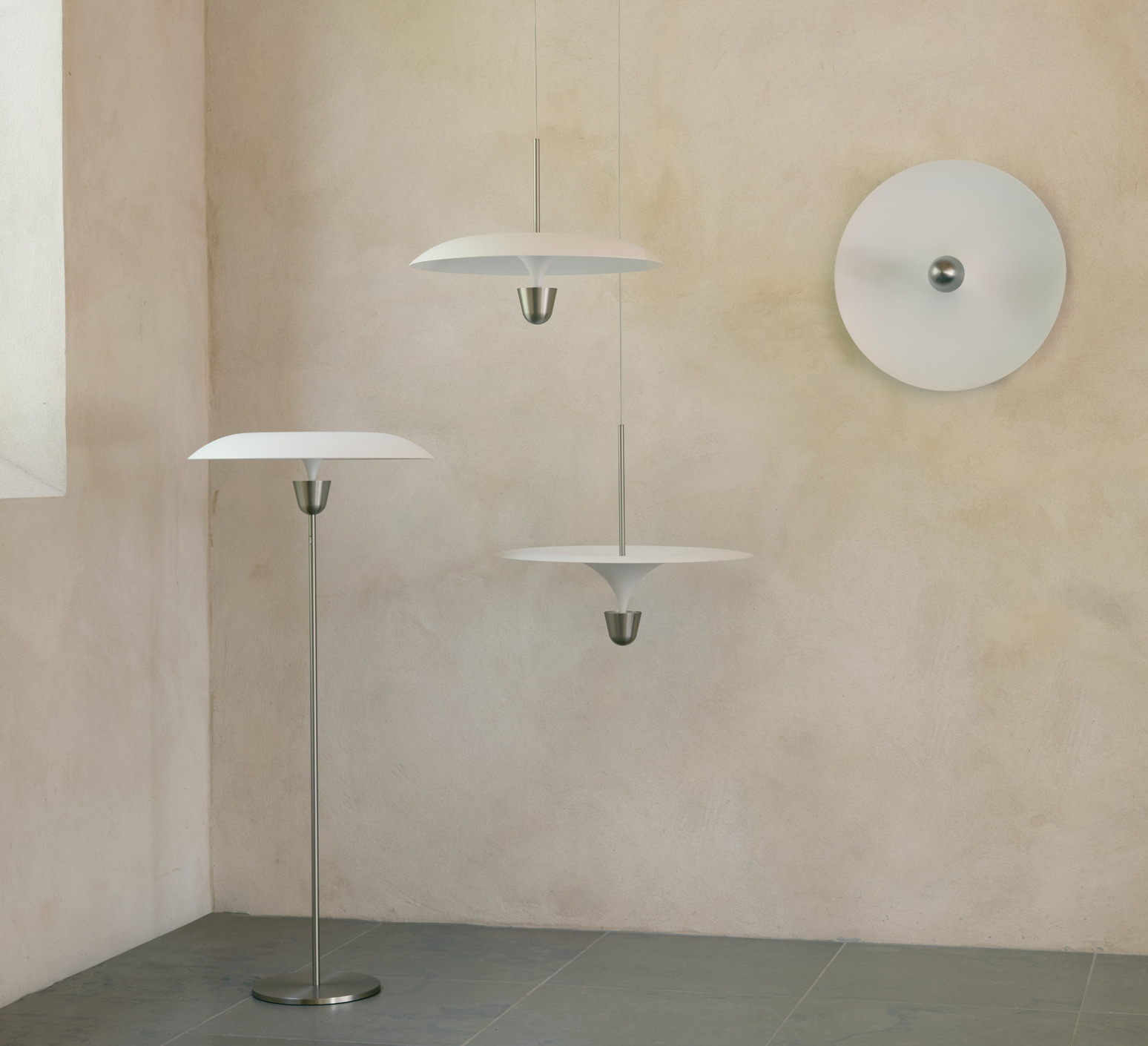 Kantarell joue sur les volumes et les contrastes grâce à son double cercle concentrique qui crée un effet visuel captivant. Le fini nickel apporte une touche contemporaine et sophistiquée, tandis que la lumière indirecte, douce et diffuse, sublime les intérieurs avec discrétion.