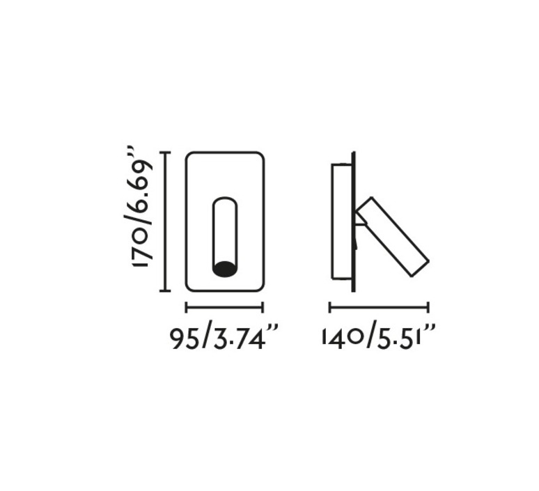 La liseuse Suau mesure 9,5 cm de largeur, 14 cm de longueur et 17 cm de hauteur. Elle est équipée d'une source lumineuse, offrant un flux lumineux de 190 lumens. L'angle d'inclinaison est de 90°, et le bras est rotatif à 355°. Le driver est inclus.