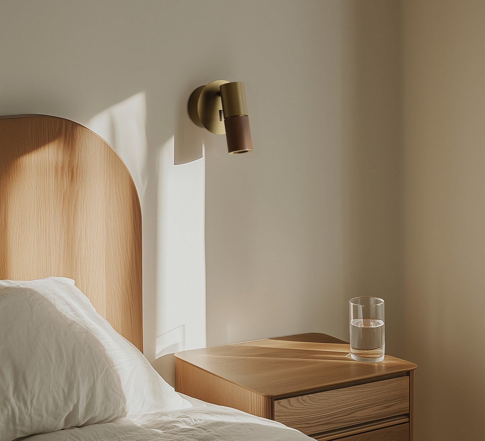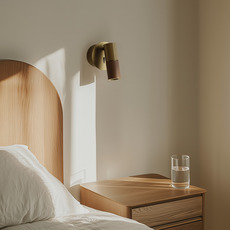 L’applique Tura affiche une silhouette cylindrique au caractère résolument contemporain. Son diffuseur orientable, mêlant cuir orange et métal finition laiton mat, apporte une touche chaleureuse et sophistiquée tout en conservant une ligne graphique et maîtrisée. Installée en tête de lit ou dans un coin lecture, elle structure l’espace avec élégance tout en offrant un éclairage fonctionnel parfaitement ciblé.