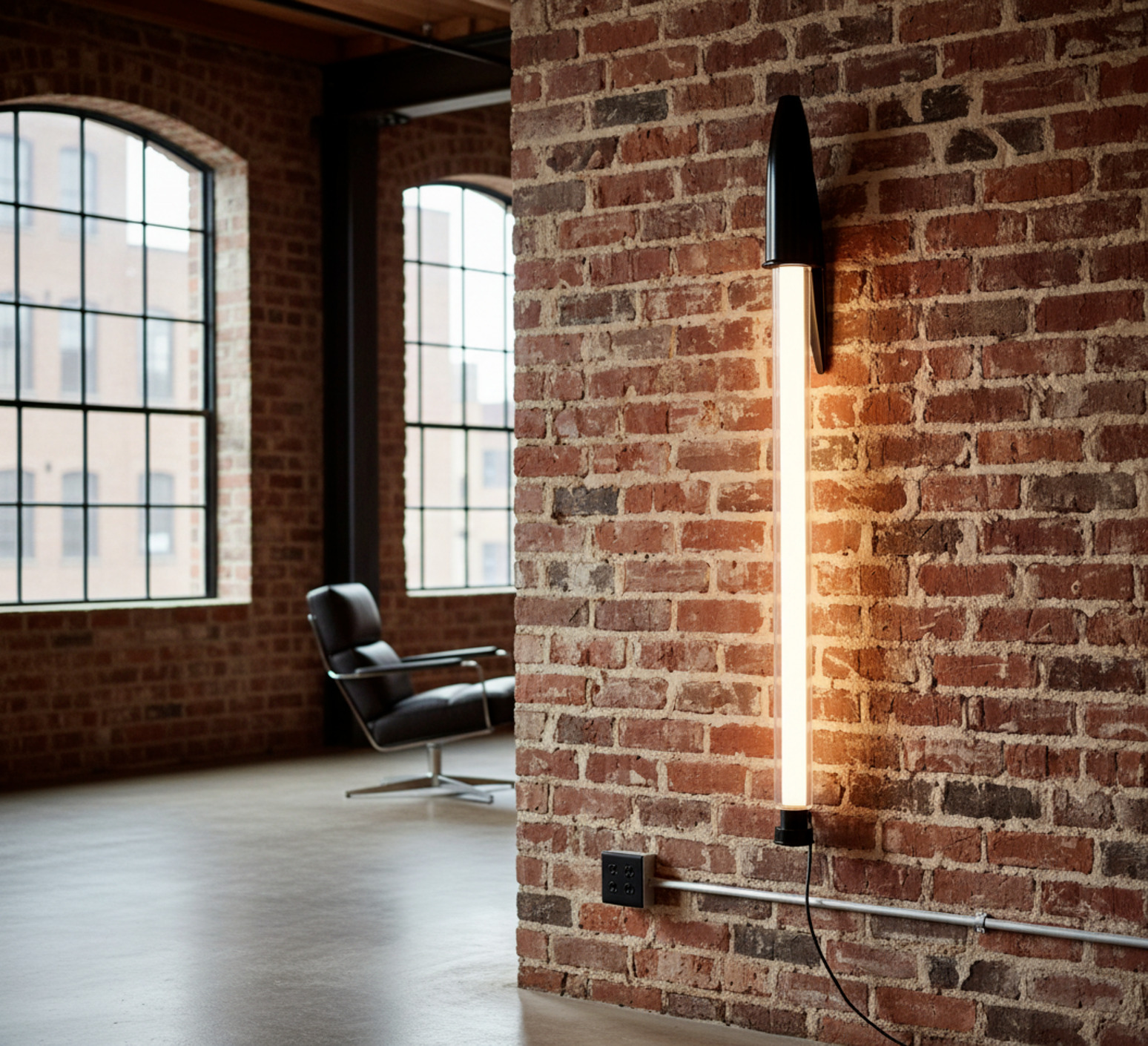 Cette lampe , pouvant être installée comme une applique murale, monumentale, conçue à l'échelle 12:1; transforme un objet du quotidien en une œuvre d'art lumineuse.
