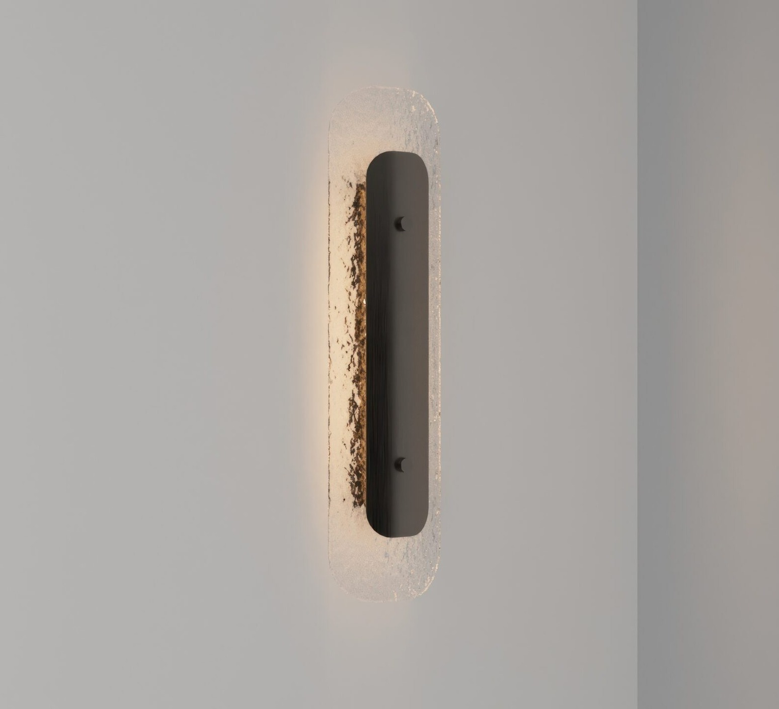 Son diffuseur en verre clair façonné au four laisse filtrer une lumière douce et nuancée, mise en valeur par une structure métallique délicatement incurvée à la finition patinée. Cette composition allongée et sculpturale joue subtilement avec les ombres, créant une présence élégante et presque architecturale sur le mur. La finition bronze antique apporte une touche de luxe discret, faisant de Contour un luminaire à la fois raffiné et intemporel.