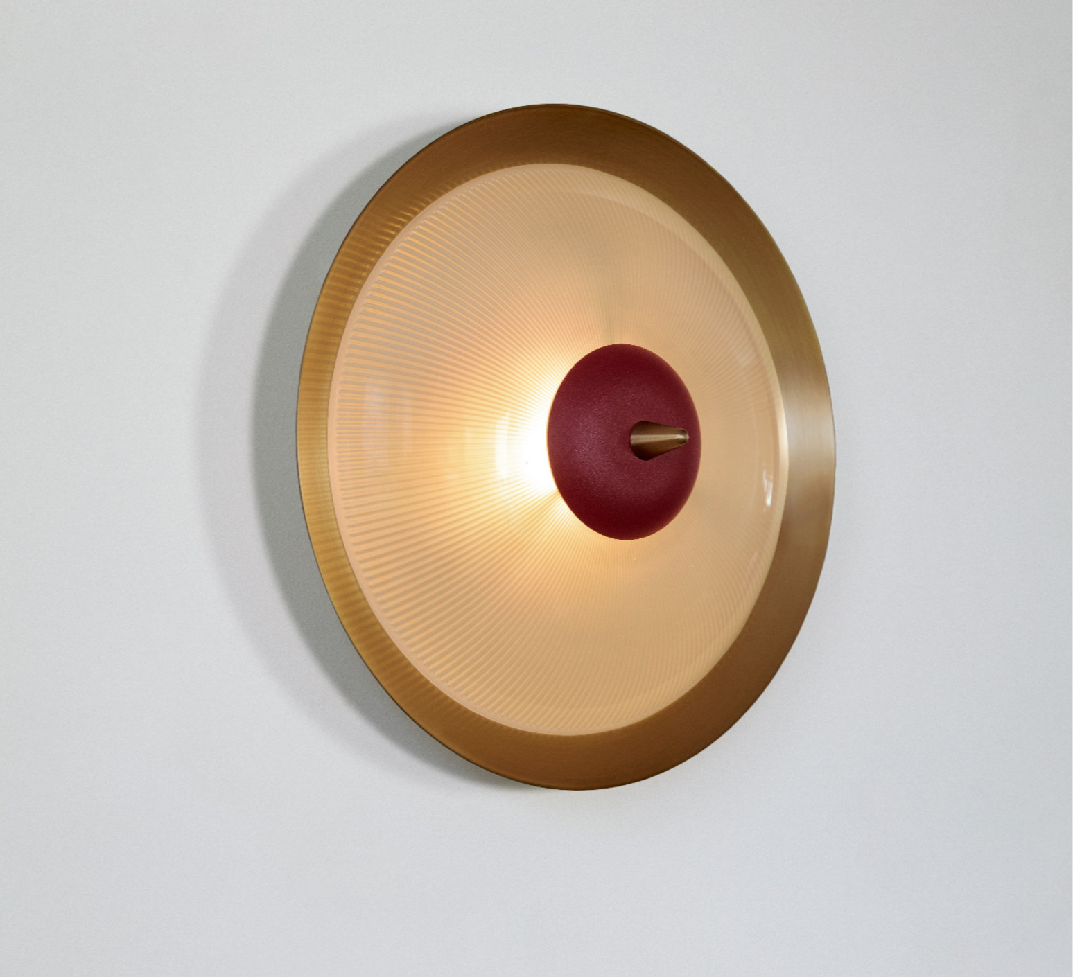 La collection Durant de Bert Frank présente une applique murale alliant l'élégance du laiton antique et la modernité du rouge.