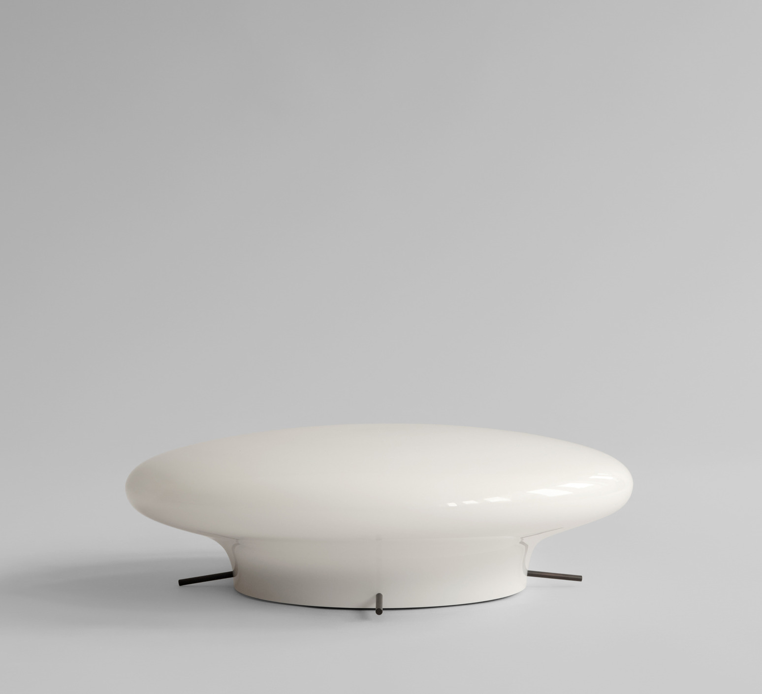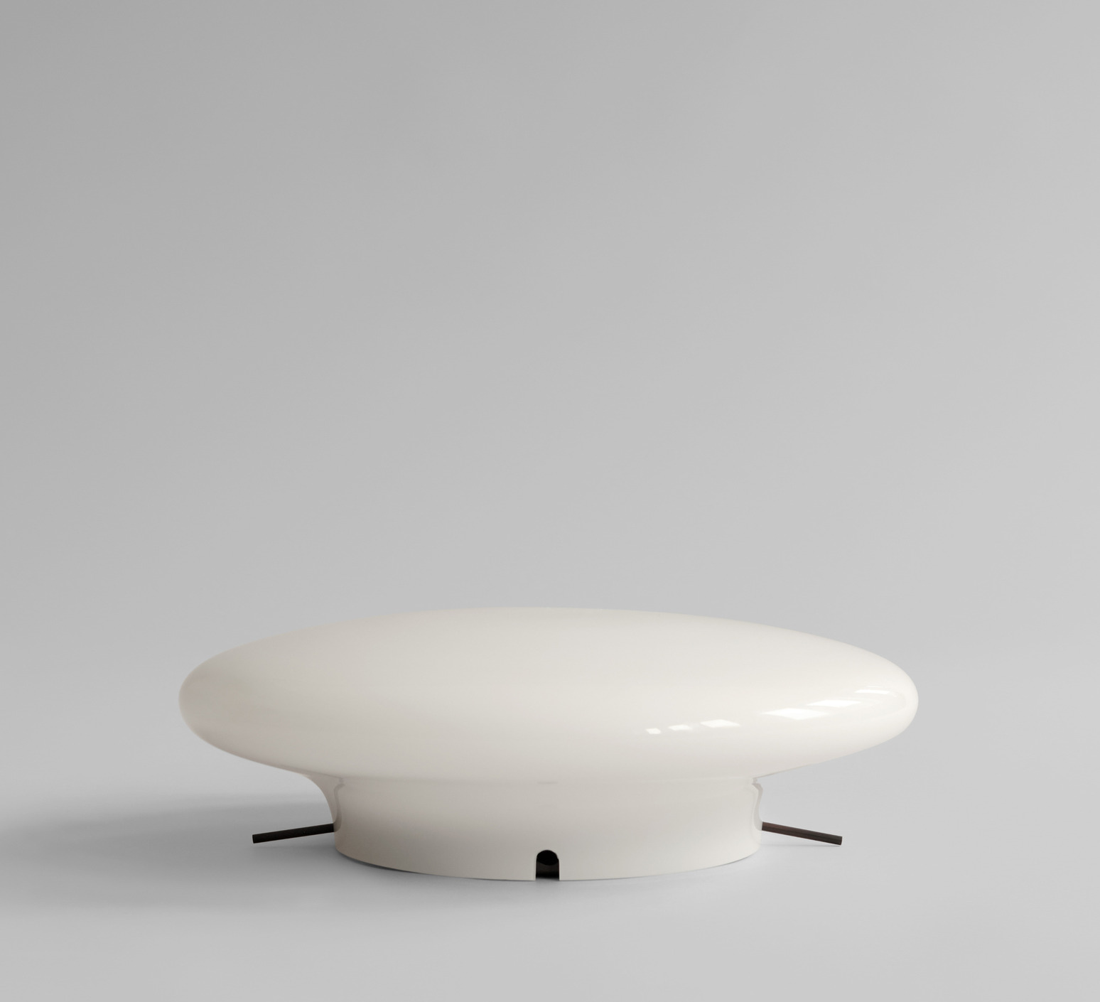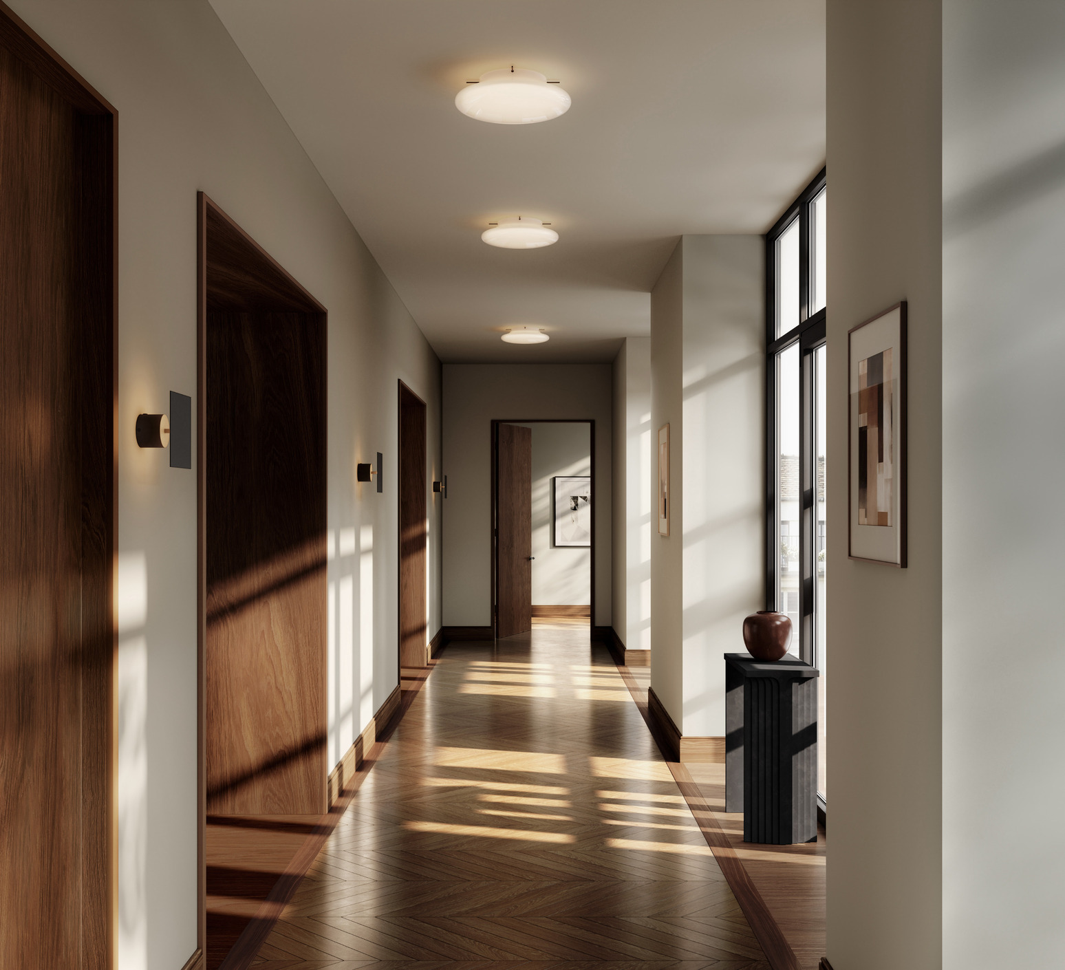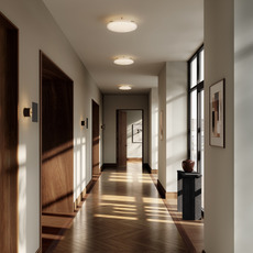 De forme circulaire, Hikari associe un large abat-jour en verre blanc opale à une structure en aluminium discrètement intégrée. La surface lisse et légèrement aplatie diffuse une lumière homogène à 360°, créant une présence douce et enveloppante. Son grand diamètre en fait un élément visuel fort, adapté aux espaces de passage, chambres ou salles de bains. Elle s’utilise en applique murale ou au plafond, seule pour marquer un point lumineux ou en série pour créer une continuité architecturale.