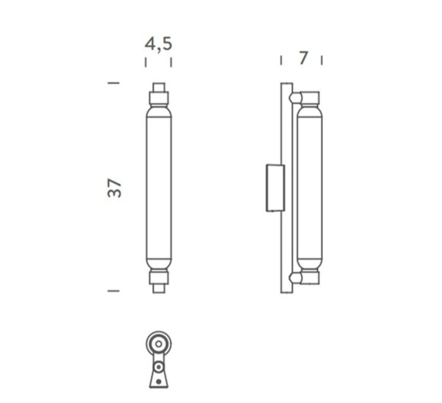 Ses dimensions sont de 37cm de hauteur et de 4,5cm de diamètre. Le module LED intégrée dimmable, offre une intensité de lumière de 925lm et une température de 2700k.
