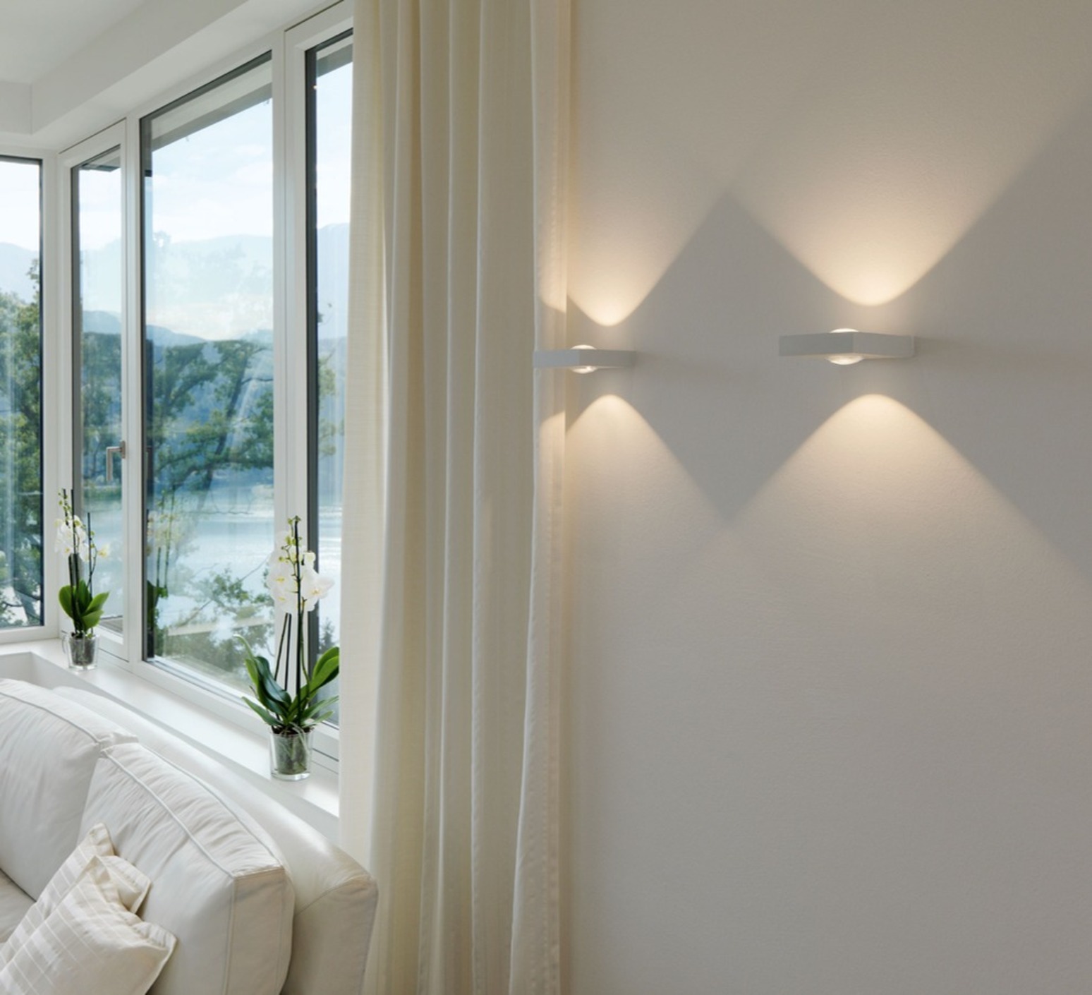 Dans un salon, une chambre, un couloir ou une entrée, Leens 2.0 apporte un éclairage indirect raffiné, structurant l’espace avec subtilité. Son rendu lumineux vers le haut et le bas crée une ambiance chaleureuse et confortable, idéale pour valoriser les volumes d’une pièce ou mettre en valeur un mur architectural.