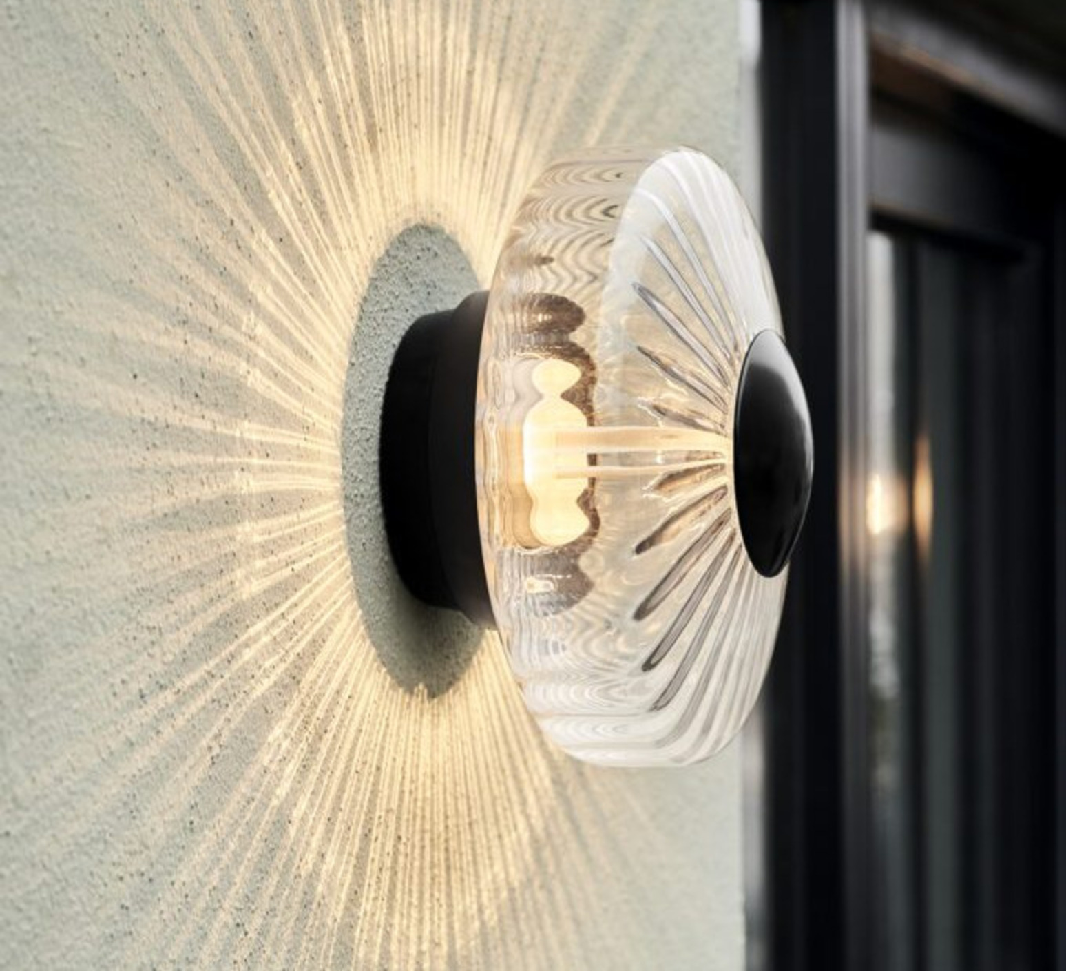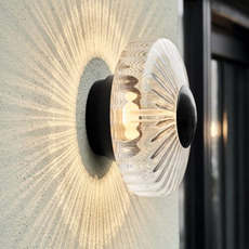 Elle révèle un travail remarquable de verre soufflé à la bouche associé à une façade en aluminium revêtu noir. Sa finition transparente, son diamètre de 26 cm et son design sculptural en font une pièce emblématique, pensée pour sublimer aussi bien les façades contemporaines que les architectures plus classiques. Certifiée IP65, elle résiste parfaitement aux conditions extérieures tout en offrant un rendu lumineux unique.