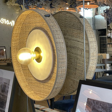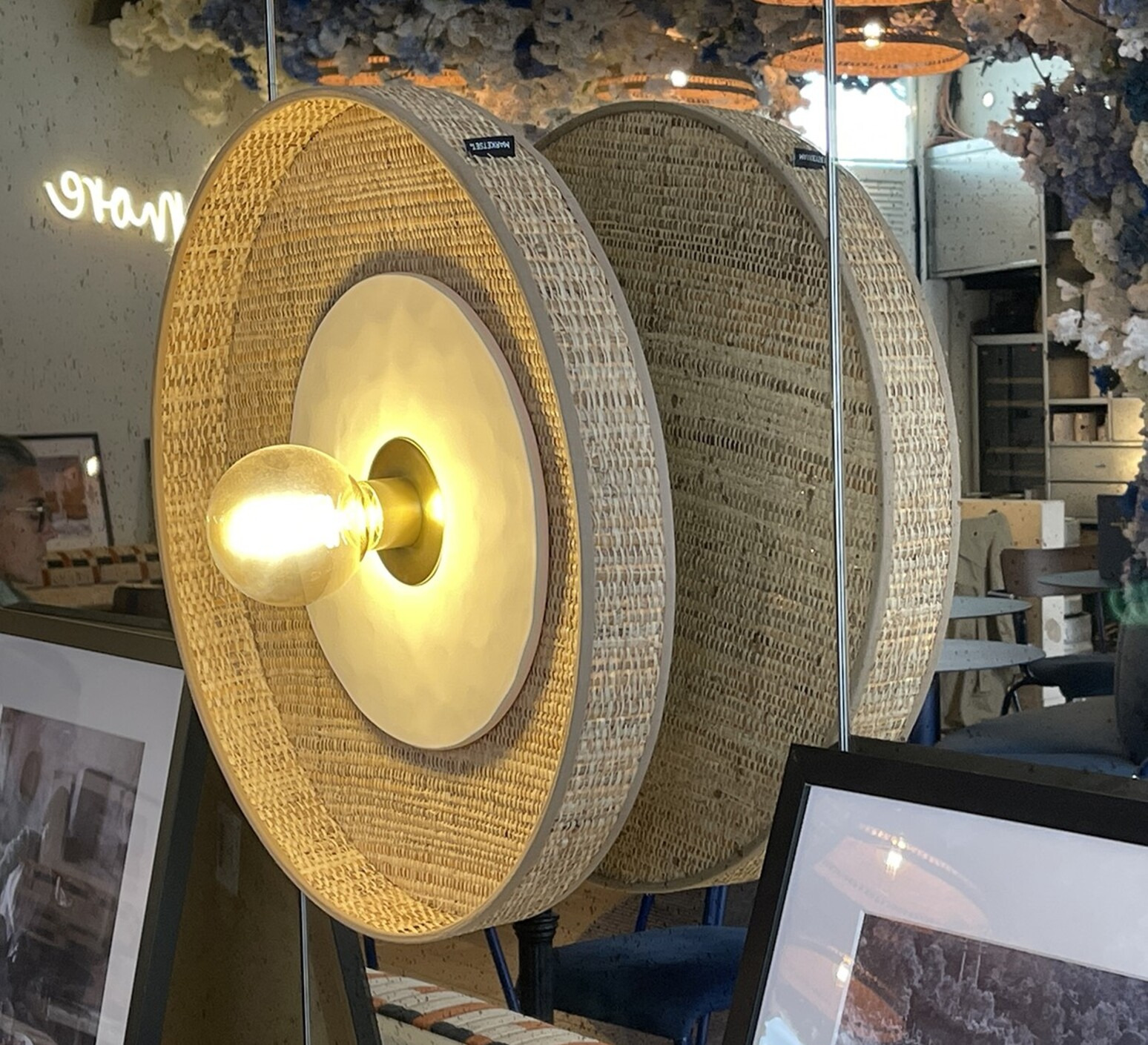 Cette applique de forme cylindrique en bana, équipé d’un disque en céramique, nous évoque l’authenticité d’une maison de vacances familiale, remplie de souvenirs et d’objets vintages artisanaux… l’applique trouve parfaitement sa place dans un salon, une chambre ou une entrée.