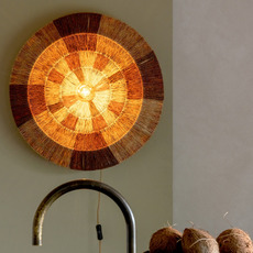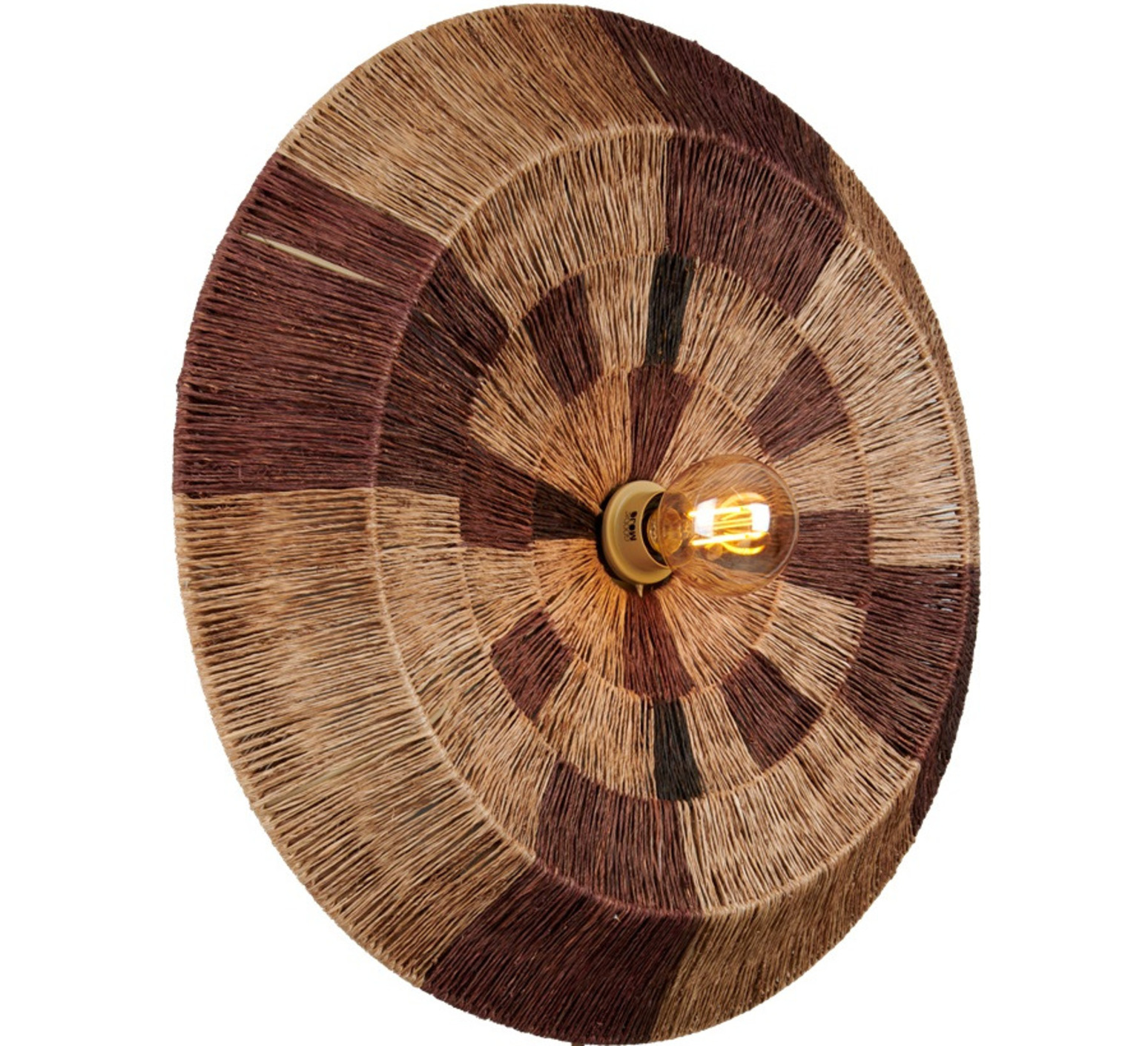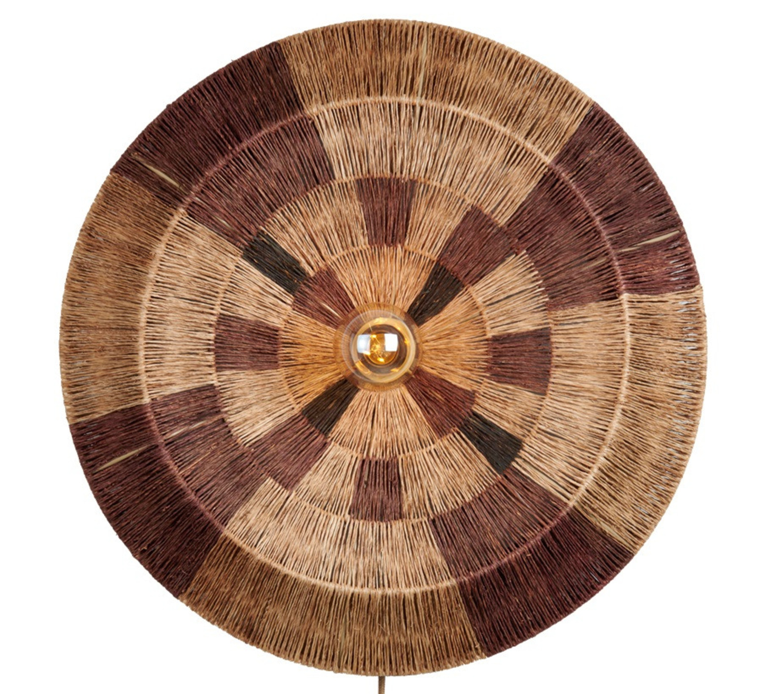 Sa forme circulaire en tissus naturel et marron crée un contraste chaleureux et texturé. Elle habille un mur avec élégance dans un salon, une chambre ou un espace de passage, et s’associe aisément à des matières brutes comme le bois ou le lin. Son style naturel structure l’espace tout en diffusant une présence décorative douce.