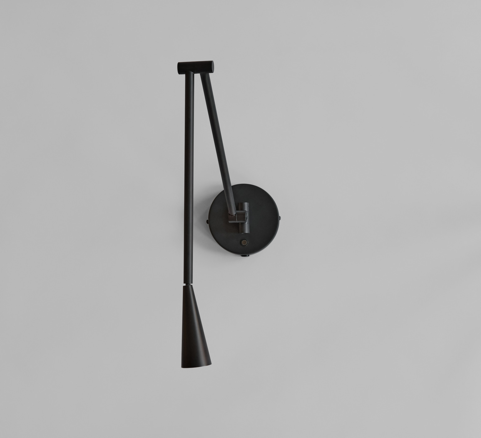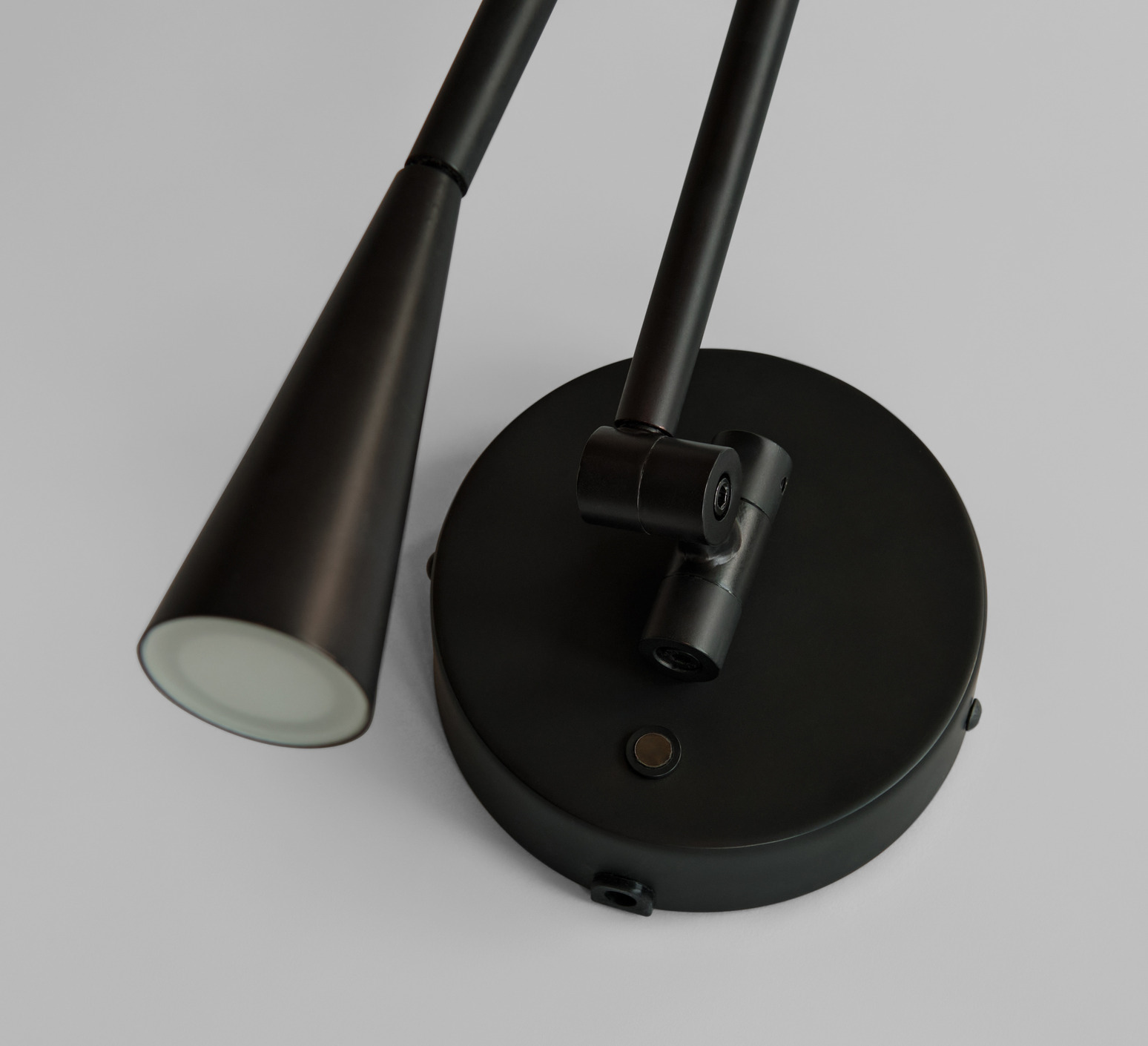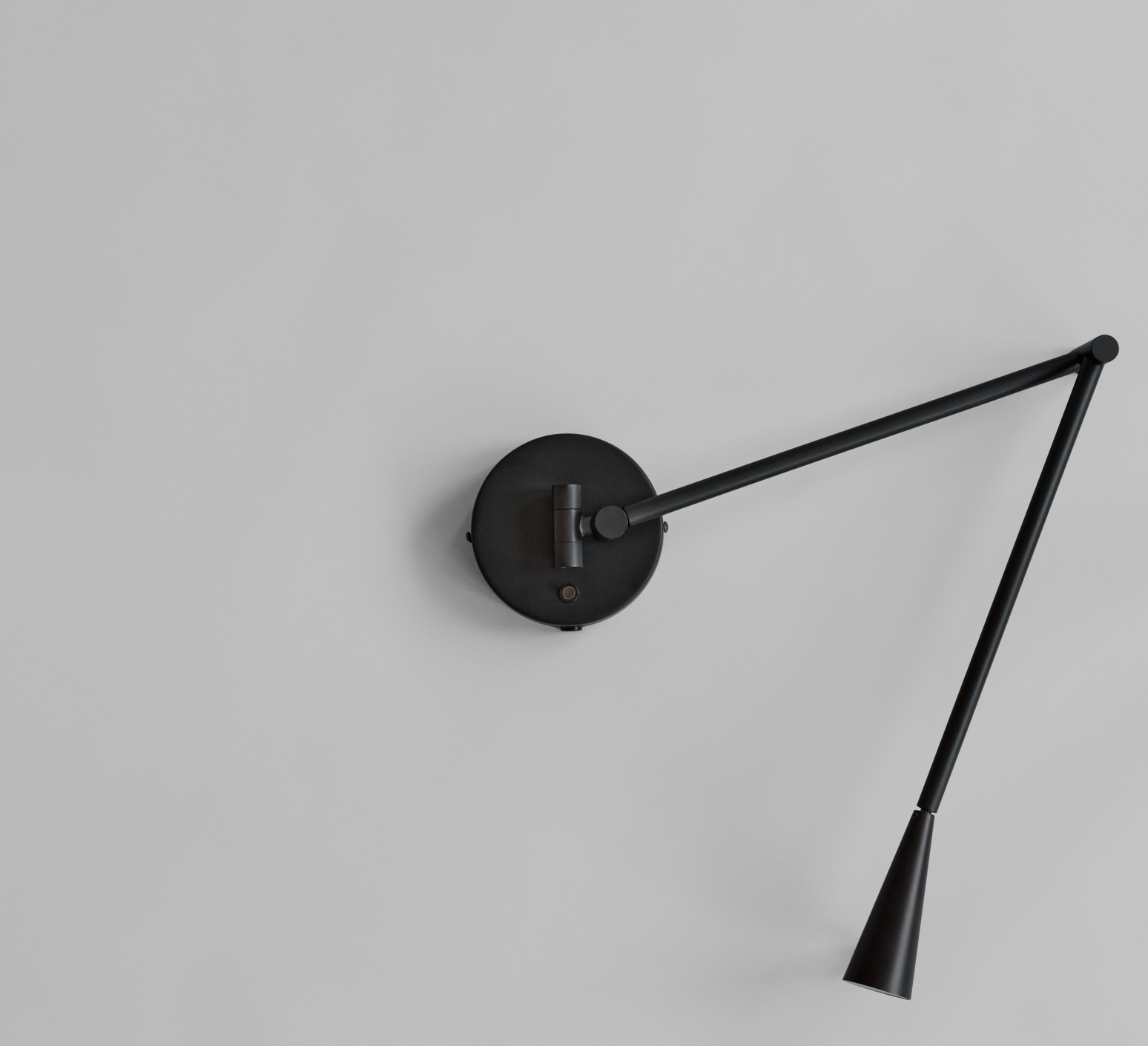 La lampe présente une finition noir brûlé sur sa structure en aluminium, avec des tubes élancés qui se courbent pour guider la lumière vers l’abat-jour conique. Cette forme conique diffuse une lueur chaude et directe, créant un contraste subtil entre la matière froide du métal et la lumière accueillante. Snake s’installe en accent mural, seul ou en série, pour rythmer un couloir ou compléter un espace de vie contemporain.