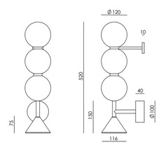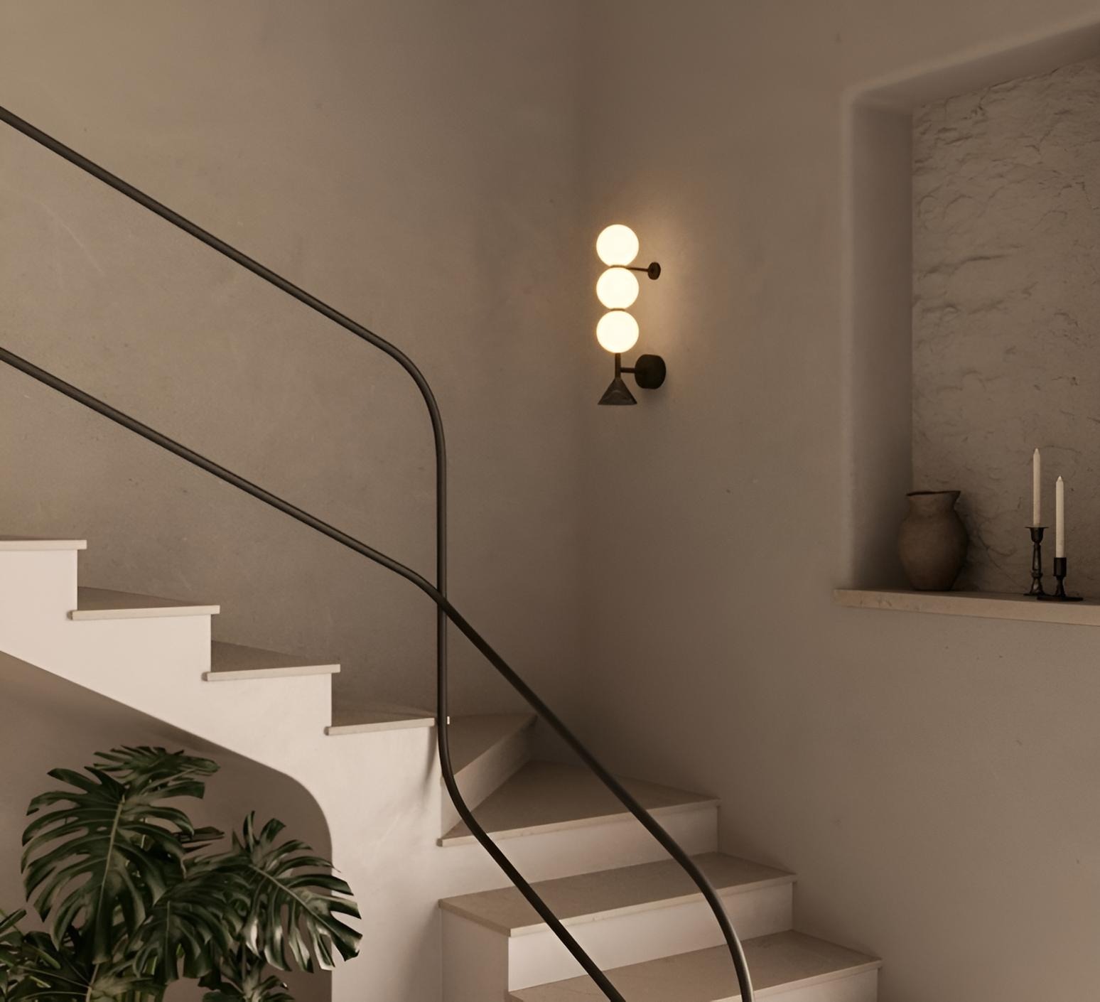 Cette applique mesure 52 cm de hauteur et dispose de 3 globes opalin en verre faisant 12 cm de diamètre. Sa source lumineuse est incluse et offre une puissance lumineuse totale de 900 lumens en 2700 kelvins, pour une lumière chaude et agréable.