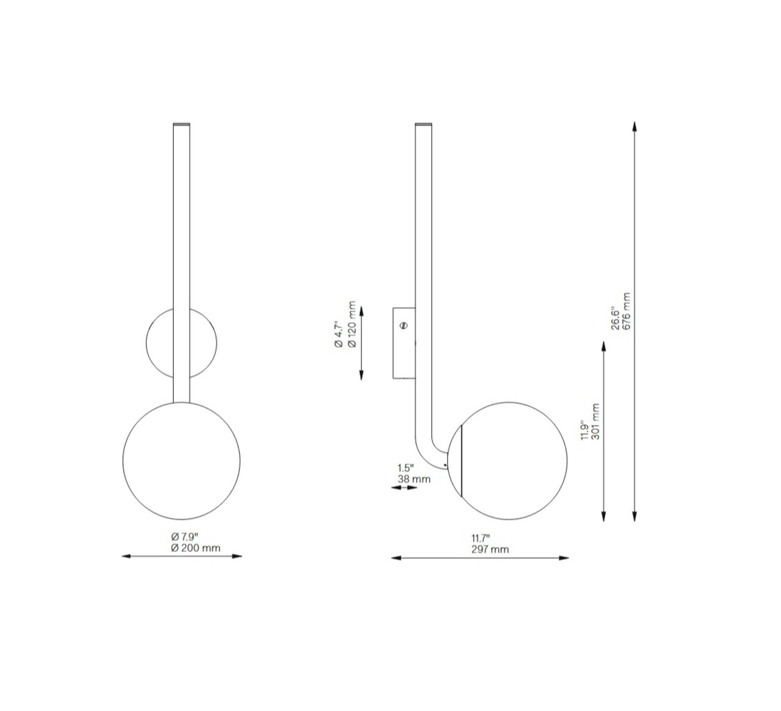 L'applique mesure 67,5cm de hauteur et 20cm de longueur.
