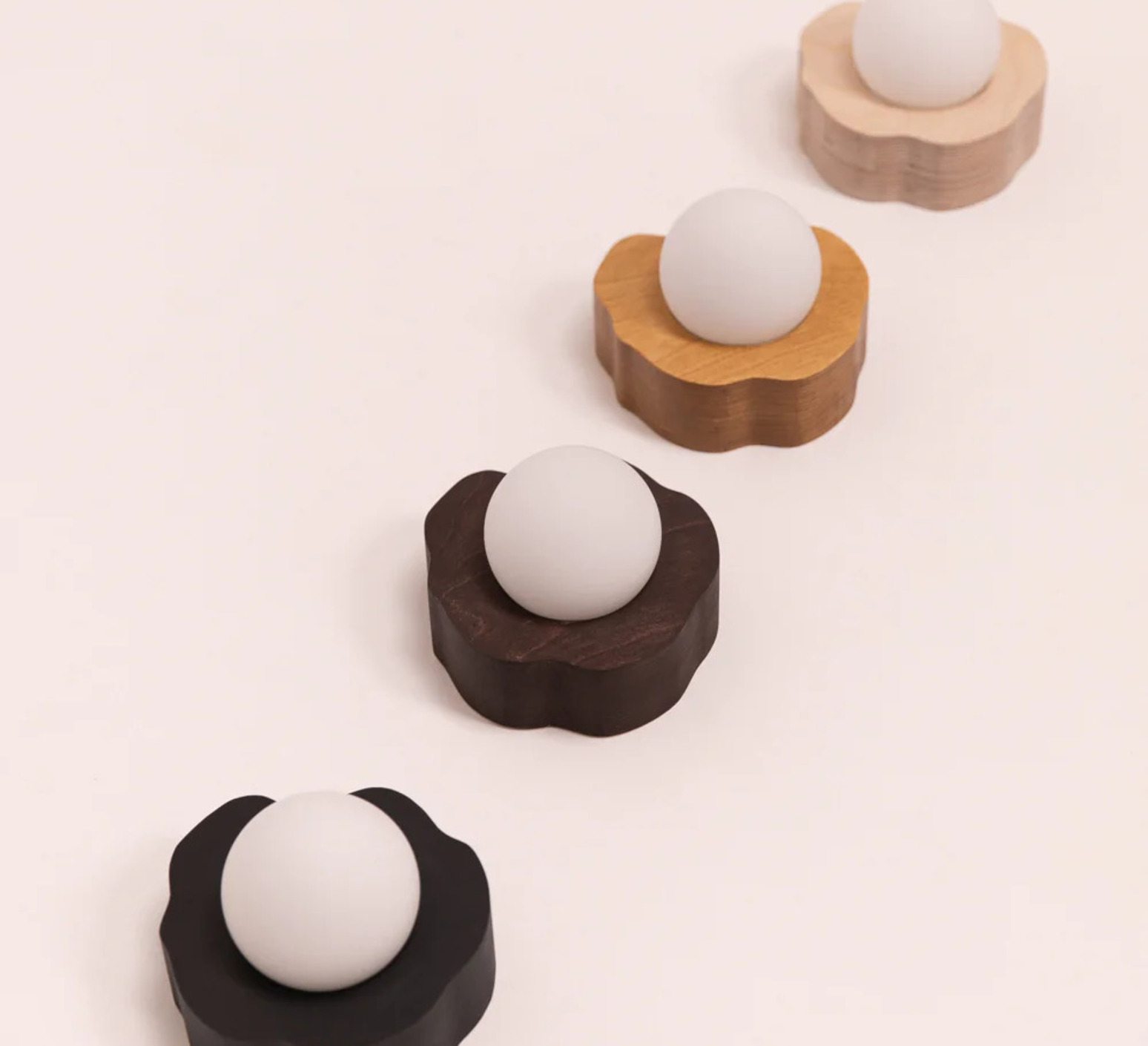 Découvrez l'applique murale Volubilis S par Little Anana, une création en bois huile teintée Terra au design fluide et organique, conçue artisanalement en France.