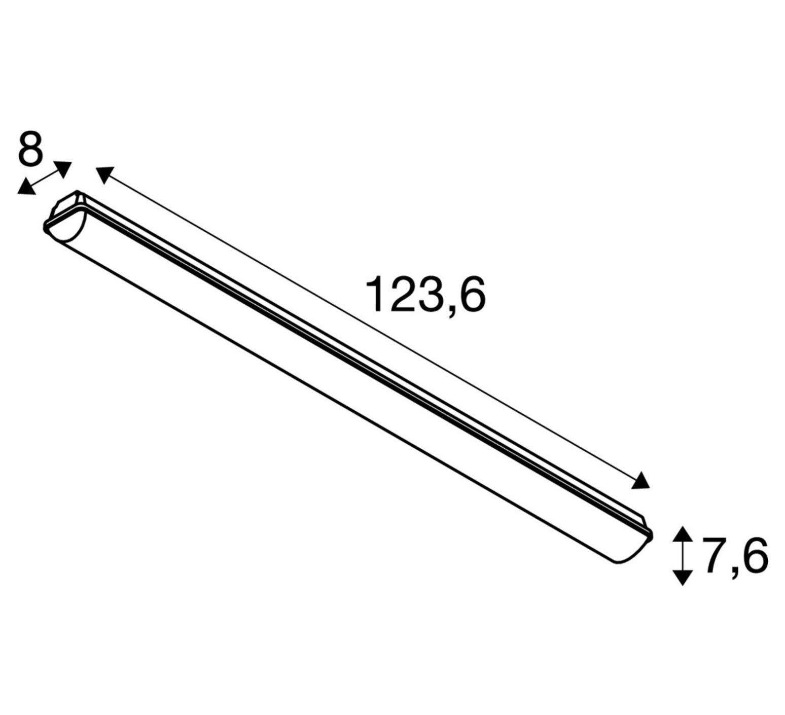 - L 123.6cm x H 7.6cm x P 8.0cm