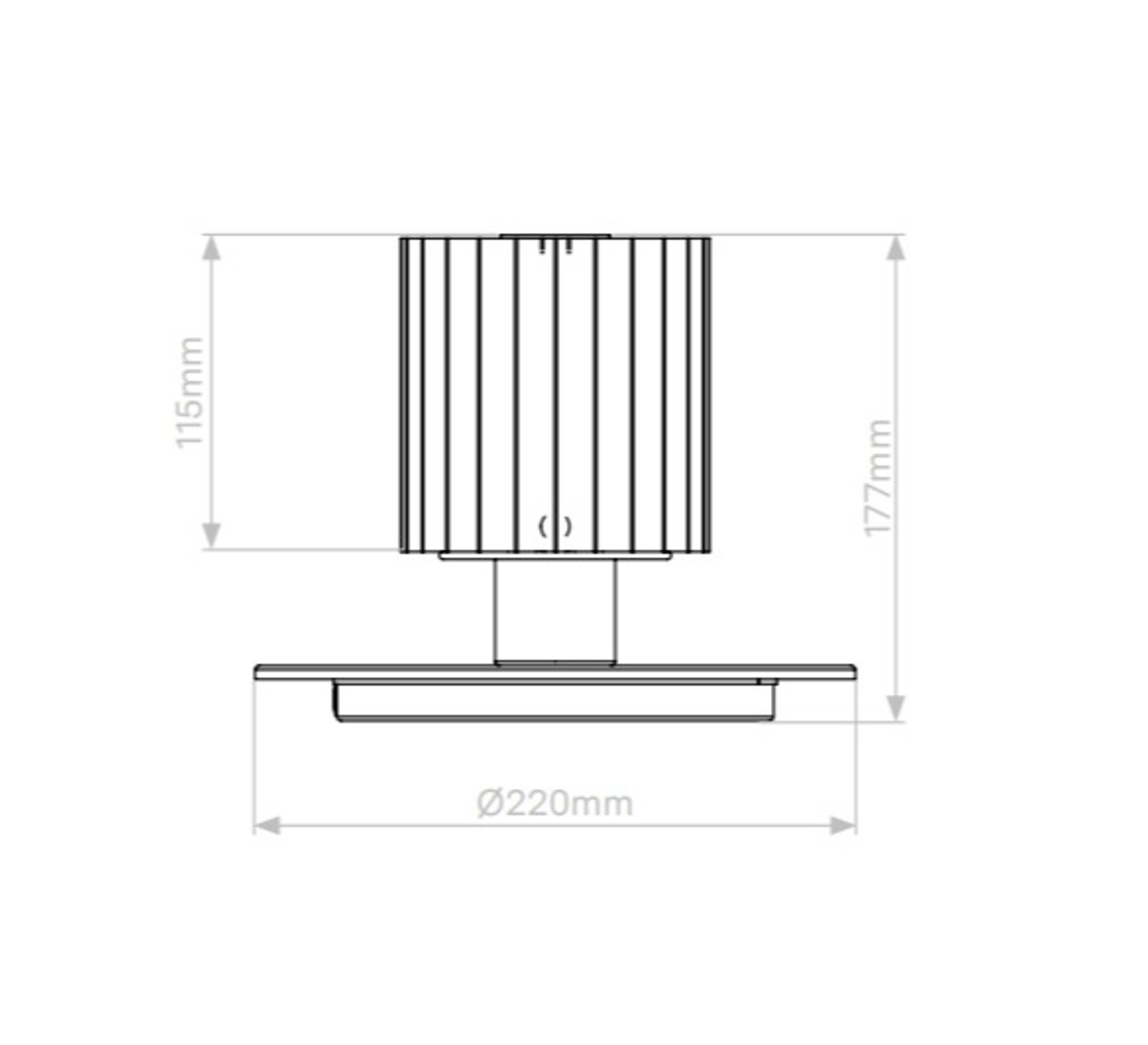 La lampe mesure 22cm de diamètre et 17,7cm de hauteur. La source lumineuse n'est pas fournie. Nous recommandons une ampoule E27, 10W max.