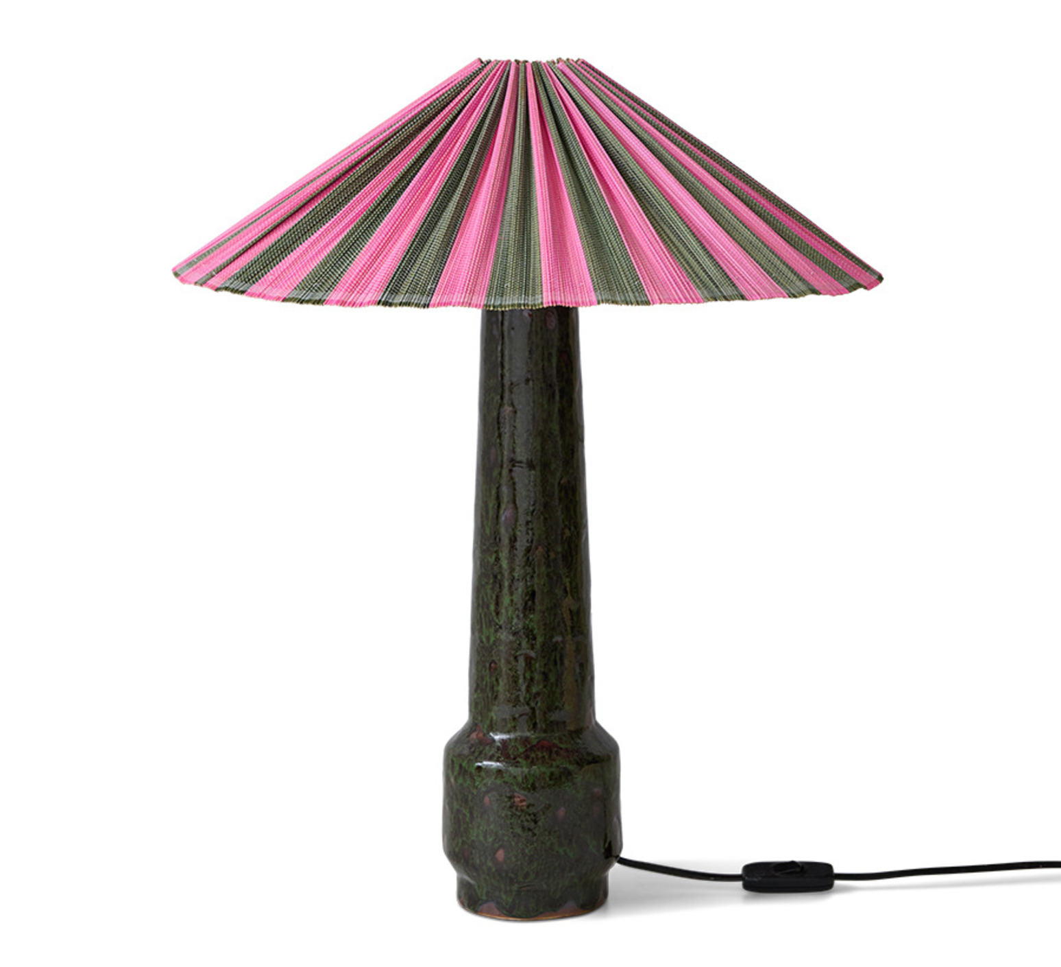 Lampe à poser, Retro Stonewear / Plisse, Vert, abat-jour rose et vert, Ø44cm, H59cm - HKLIVING