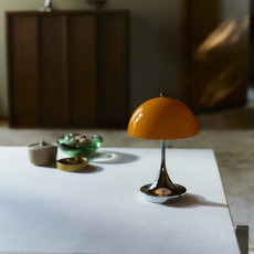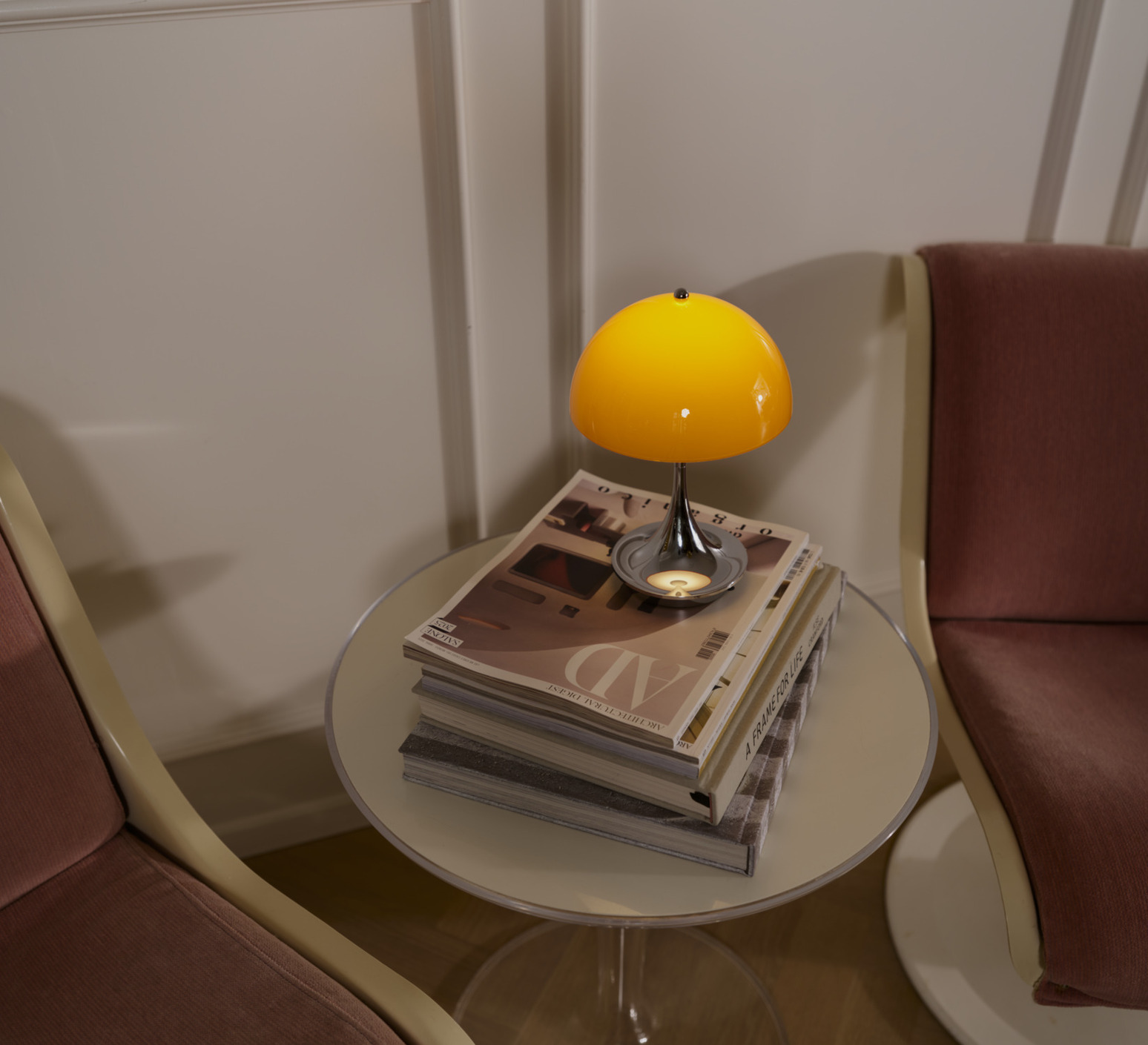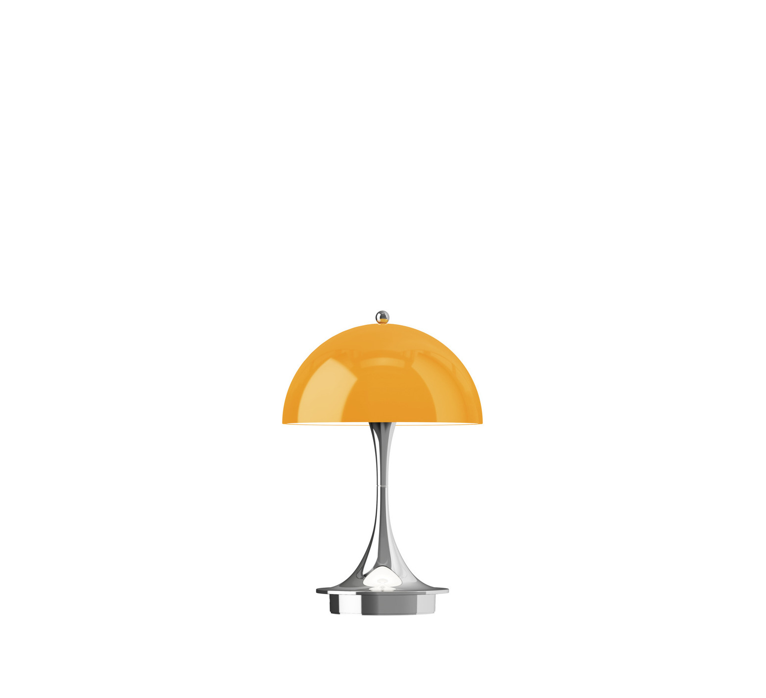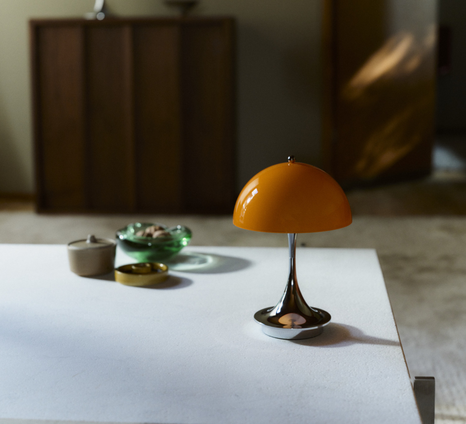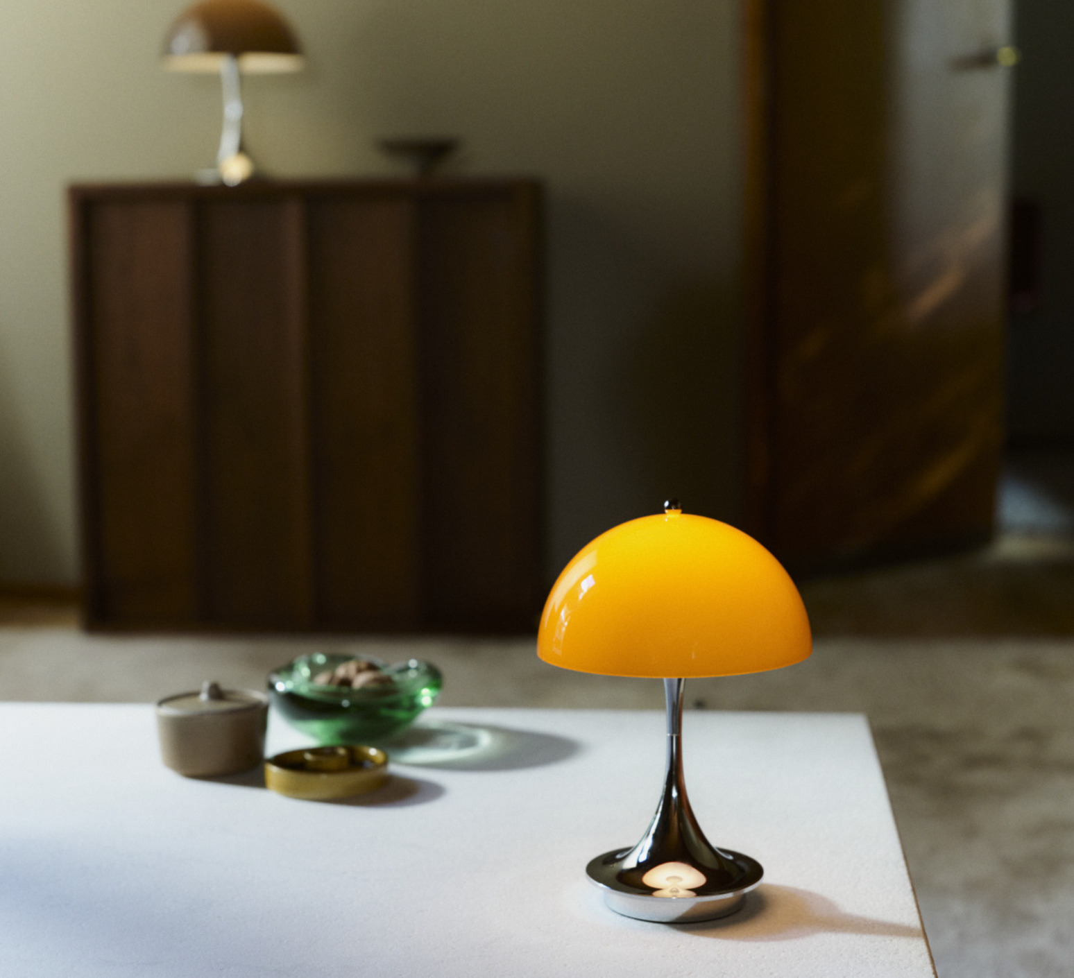 La baladeuse Panthella 160 V3 Originals de Louis Poulsen, collection Panthella, célèbre la réédition des teintes d’origine des années 1970 à l’occasion du 100e anniversaire de Verner Panton.