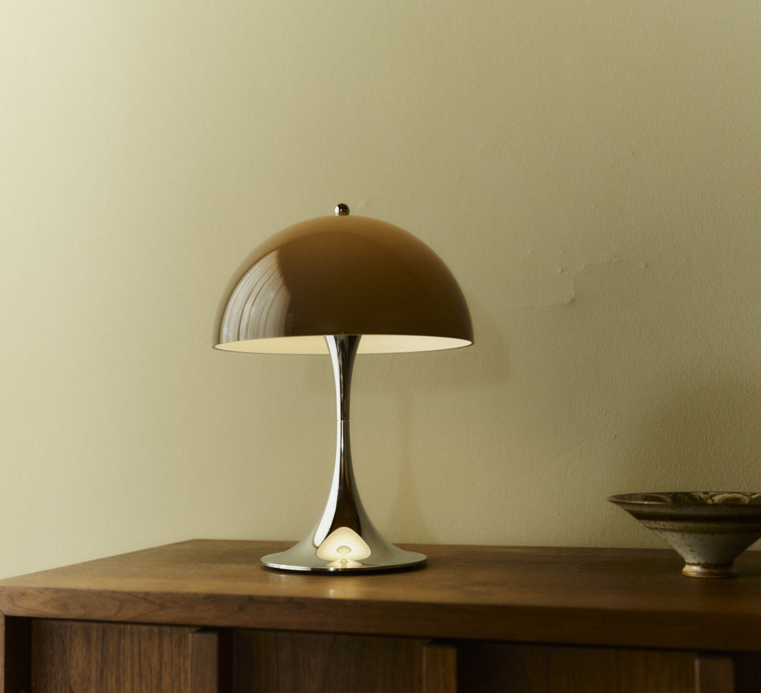 Lampe, Baladeuse, Panthella 250 V3 Originals, marron opale, chrome, IP44, LED, dim, 2700K, 335 lm, Ø25cm, H34,6cm - Louis Poulsen