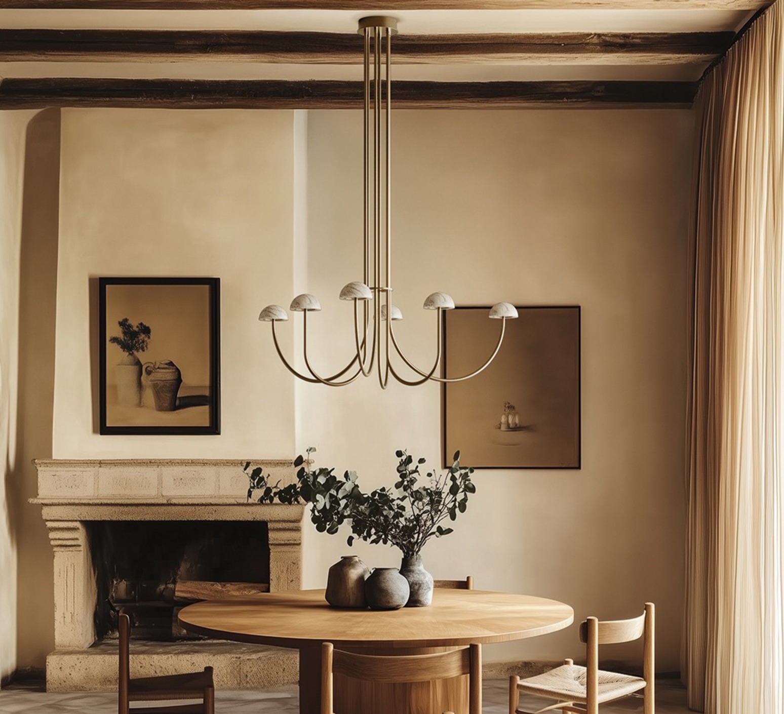 Ce lustre est d'une élégance remarquable avec son design organique en métal or vieilli et marbre blanc. Il apportera une touche sophistiquée à tout intérieur. Pour une décoration réussie, nous vous conseillons de l'installer au-dessus d'une table à manger pour un effet saisissant.