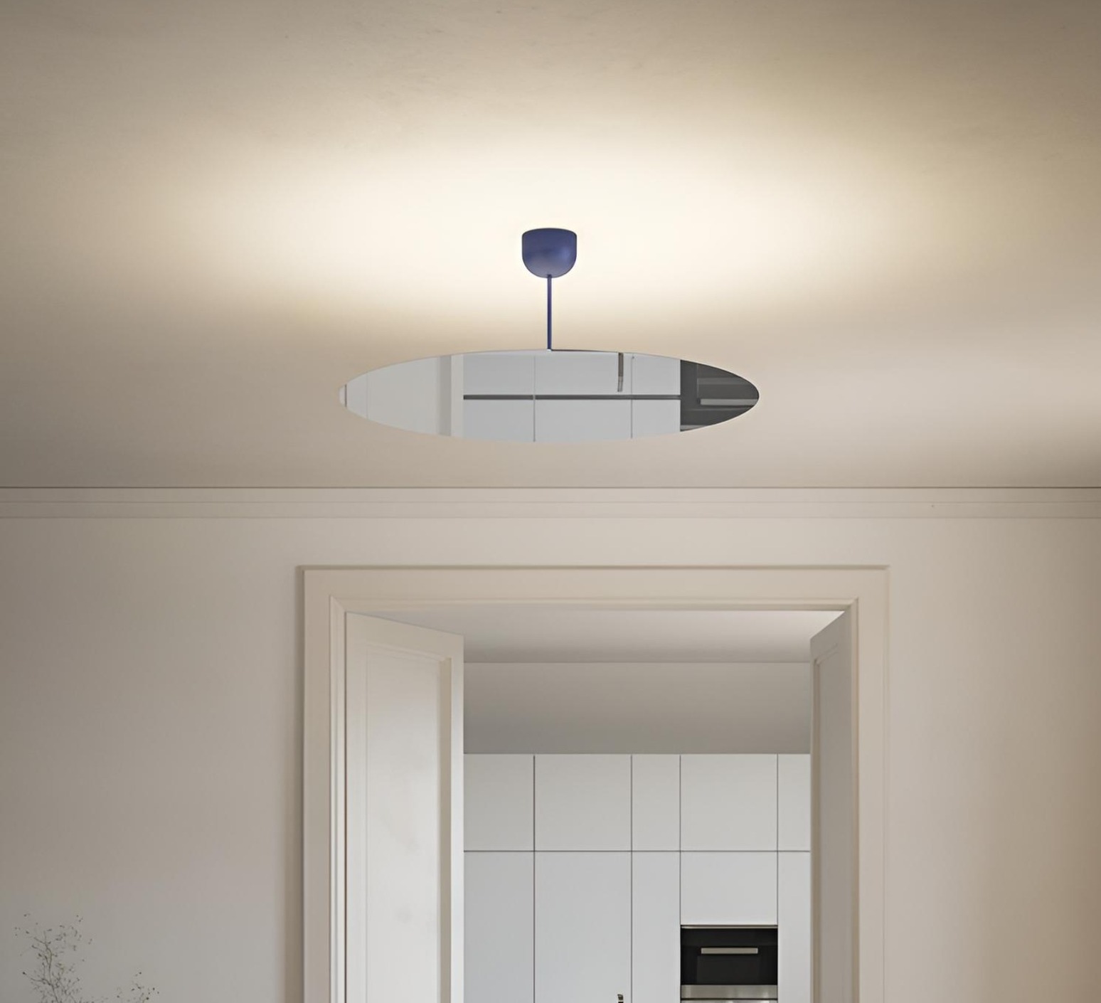 Découvrez le plafonnier Millimetro bleu royal et verre effet miroir de la marque Luceplan.