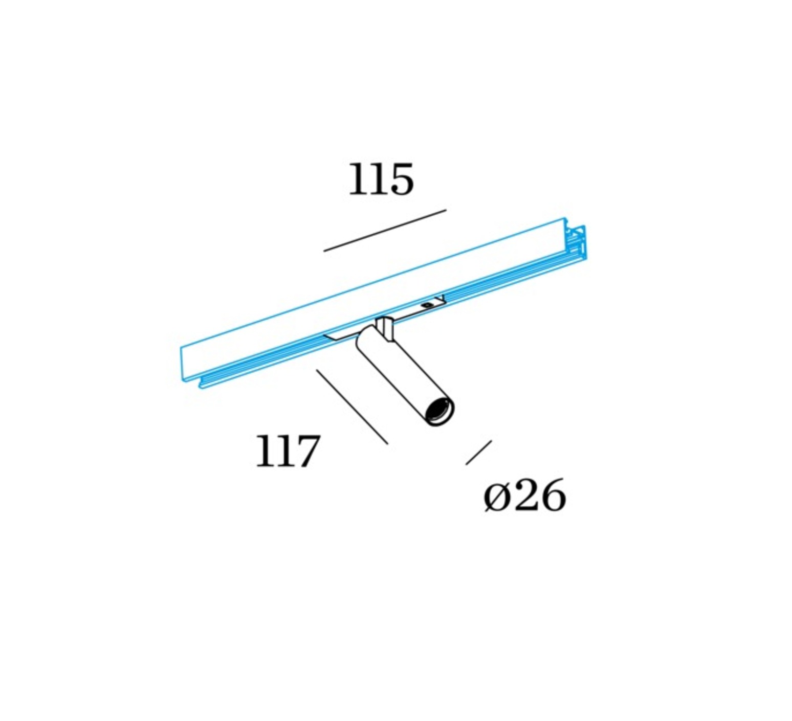 Il est installé sur un rail de 11,5 cm de longueur et mesure 11,7 cm de hauteur. Sa source lumineuse est incluse. Le driver n'est pas inclus mais nécessaire au bon fonctionnement de l'appareil.