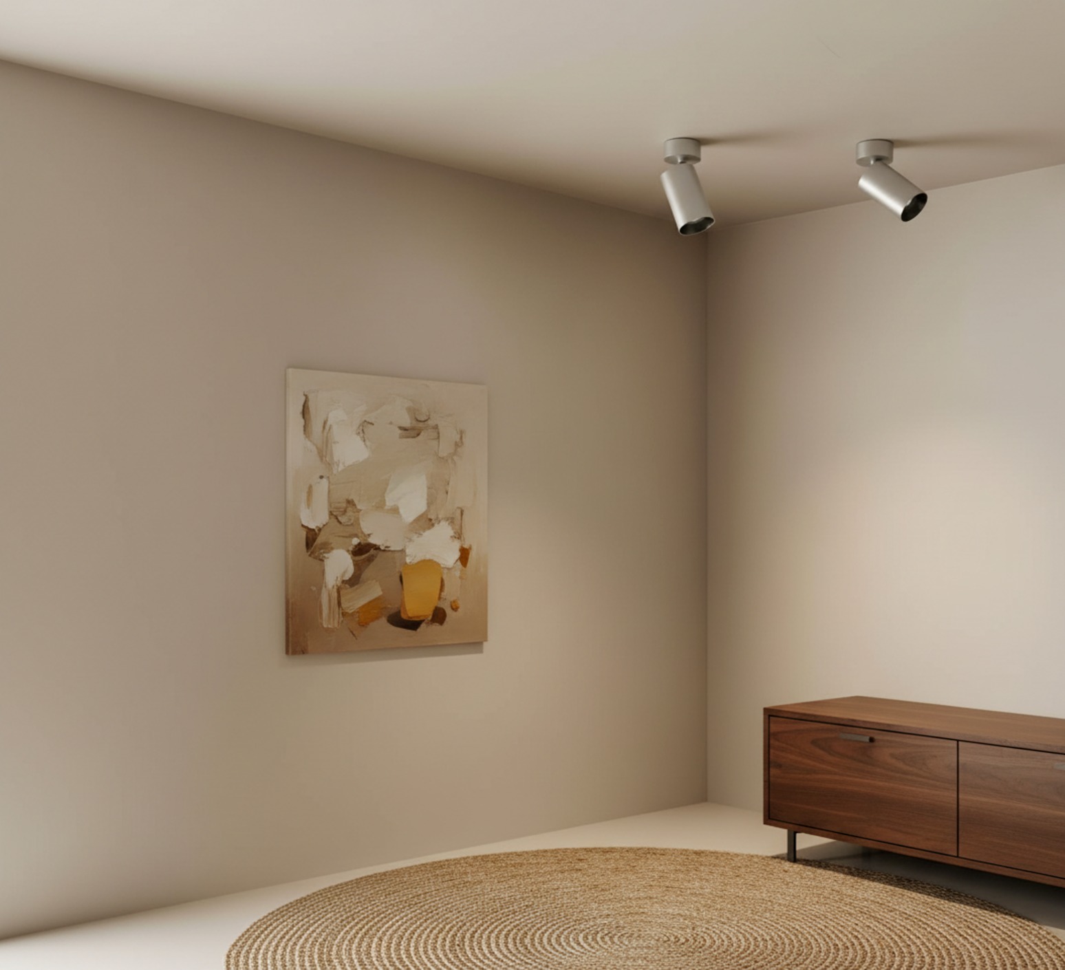 Ce projecteur orientable de coloris aluminium est conçue en aluminium avec un diffuseur en polycarbonate.