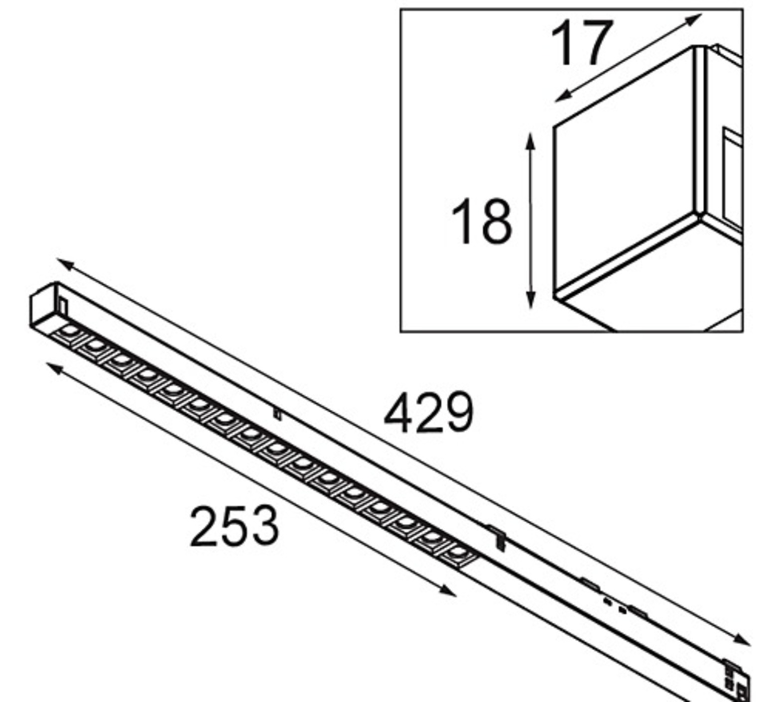 Pista Linear Spots Track 48V 429 1x propose un éclairage direct, avec sa source LED incluse, il promet une excellente qualité de lumière grâce à un IRC >90. Le modèle mesure 42,9 cm de long pour 1,8 cm de hauteur, offrant une solution élégante pour les plafonds bas ou les lignes de lumière continues.