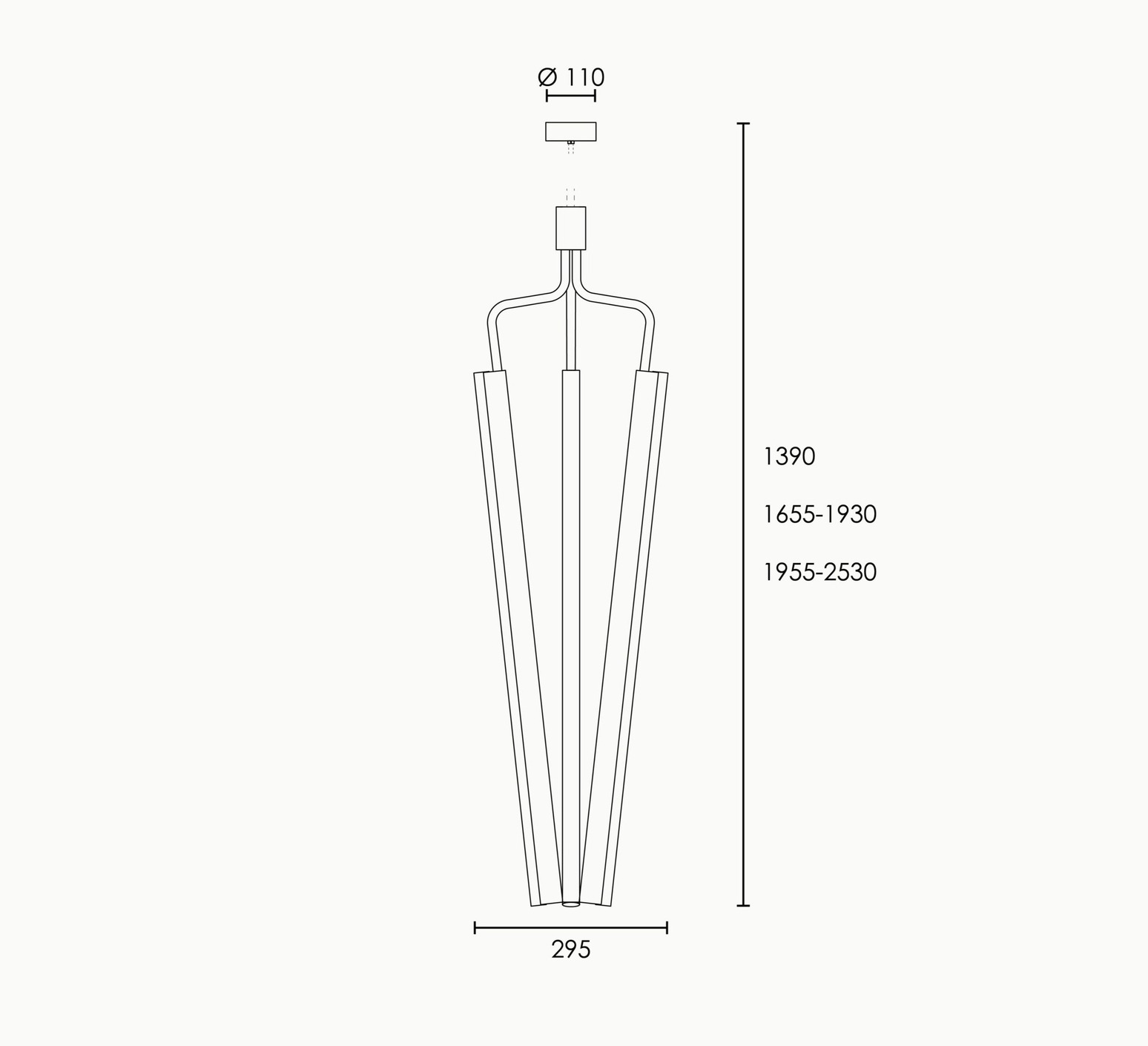 Le lustre Angel 3 1000 Chandelier est équipé de 3 sources LED dimmables intégrées de 9,9 W chacune, offrant une température de couleur de 2700K. Chaque bras utilise une douille S14S. La structure mesure 29,5 cm de diamètre avec une hauteur réglable entre 165,5 cm et 193 cm.