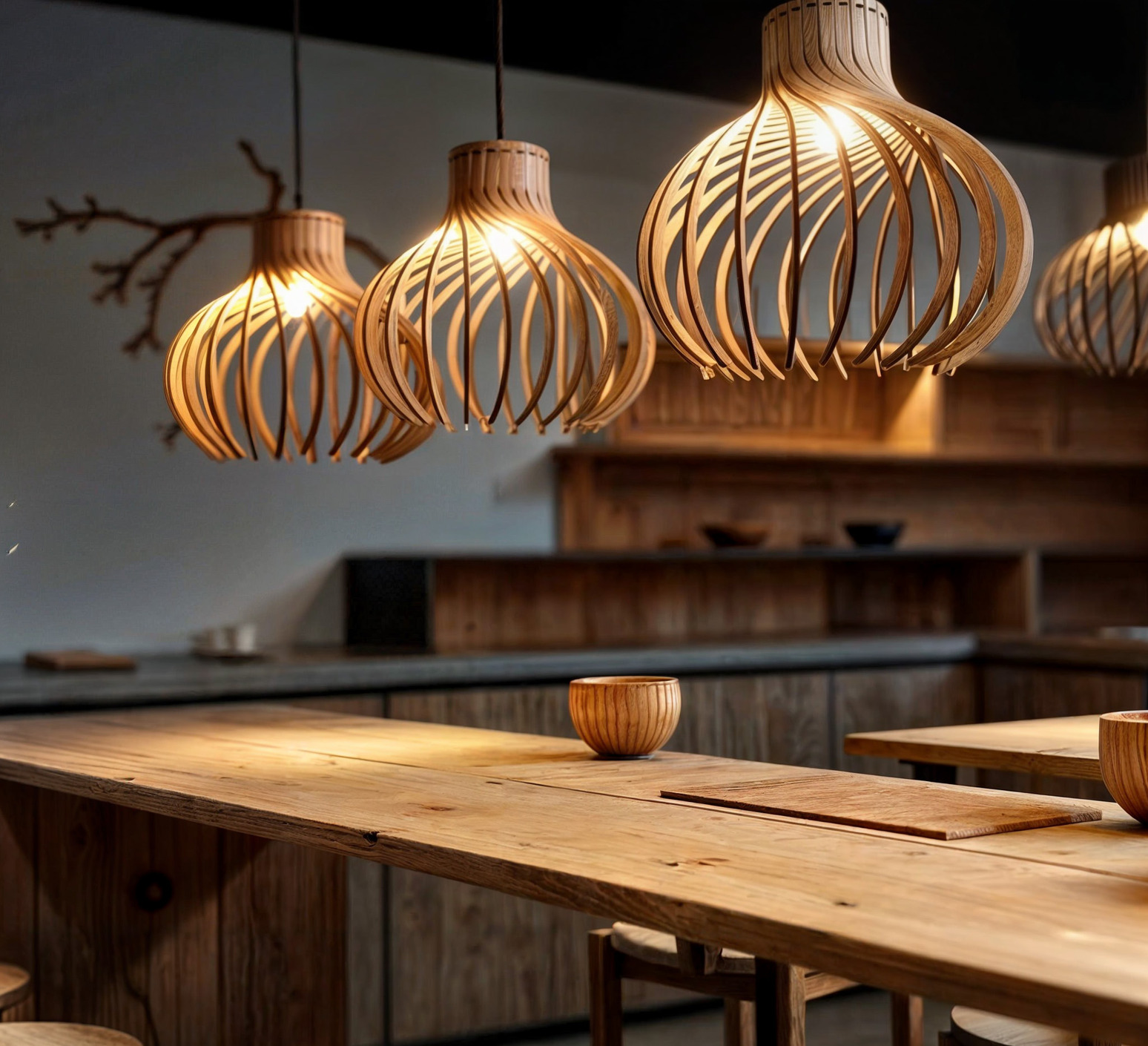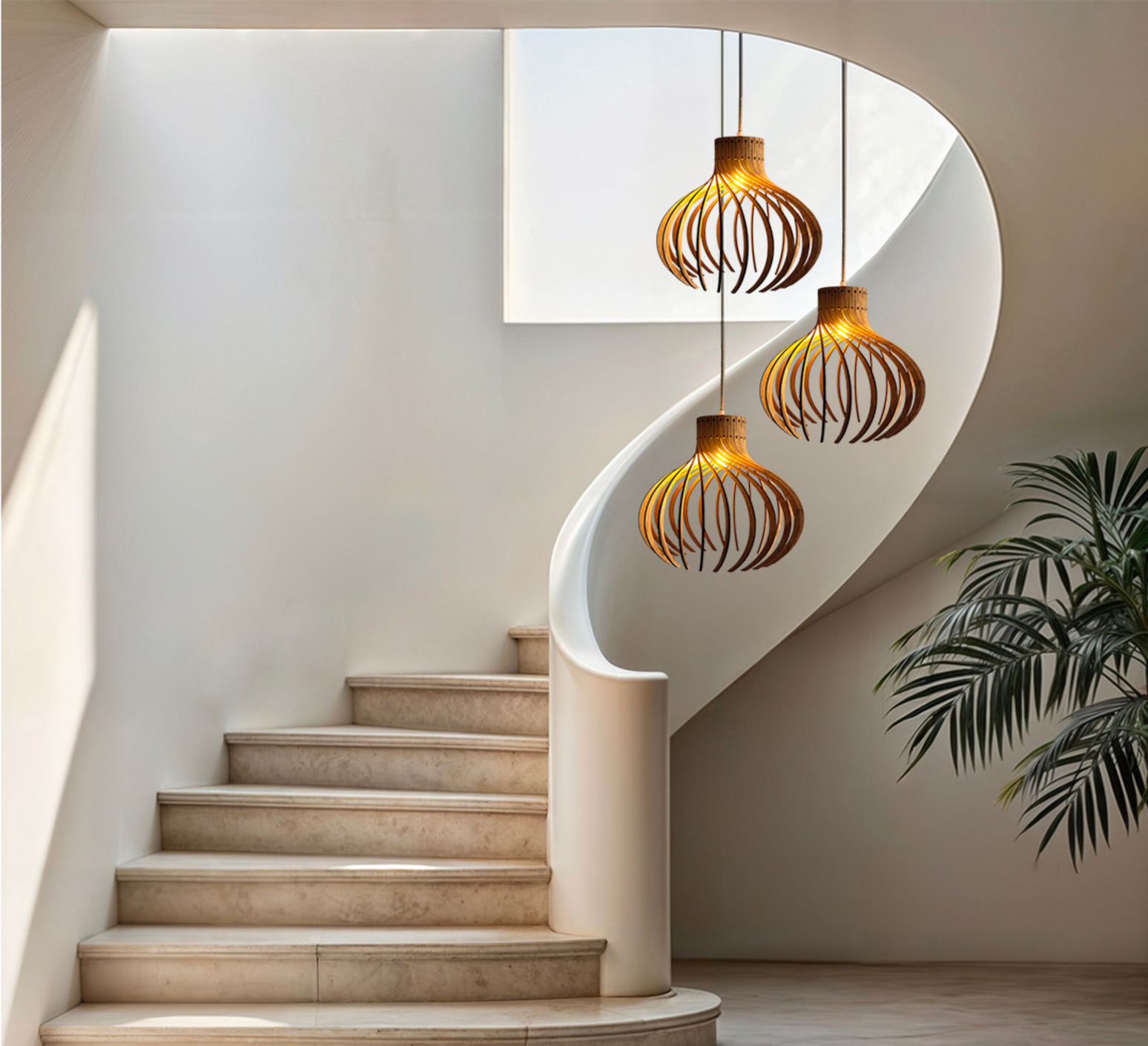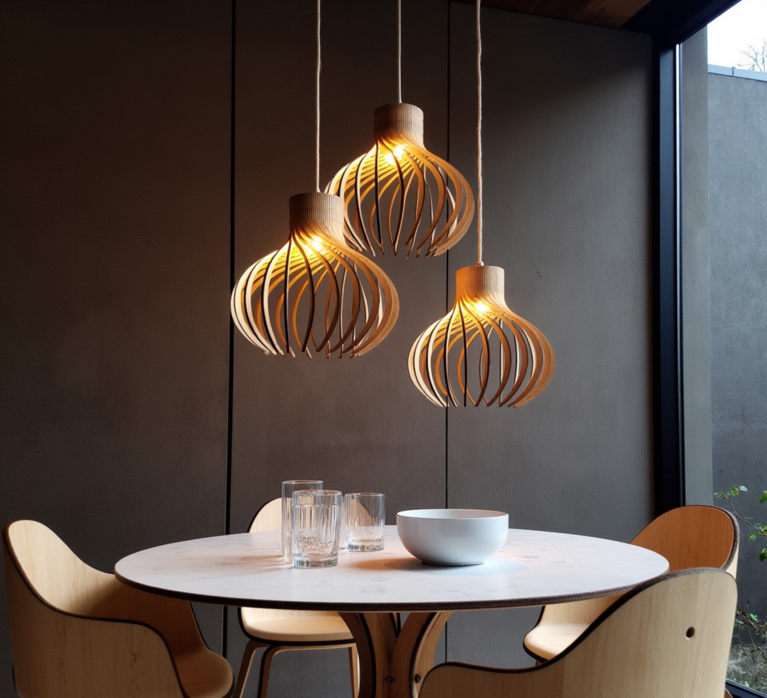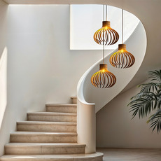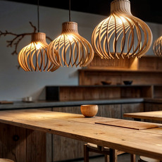 Son abat-jour en bois naturel apporte chaleur et douceur à la pièce accentuant ainsi une atmosphère apaisante. Avec un diamètre de 35cm et une hauteur de 30cm, accrochez-la au-dessus d'une table de salle à manger pour créer une ambiance conviviale et chaleureuse. Dotée d'un câble marron de 3m50, ce luminaire à trois têtes laisse place à votre imagination : jouez avec les hauteurs pour une allure symétrique ou composez un dégradé de lumière évoquant une élégante chute lumineuse.