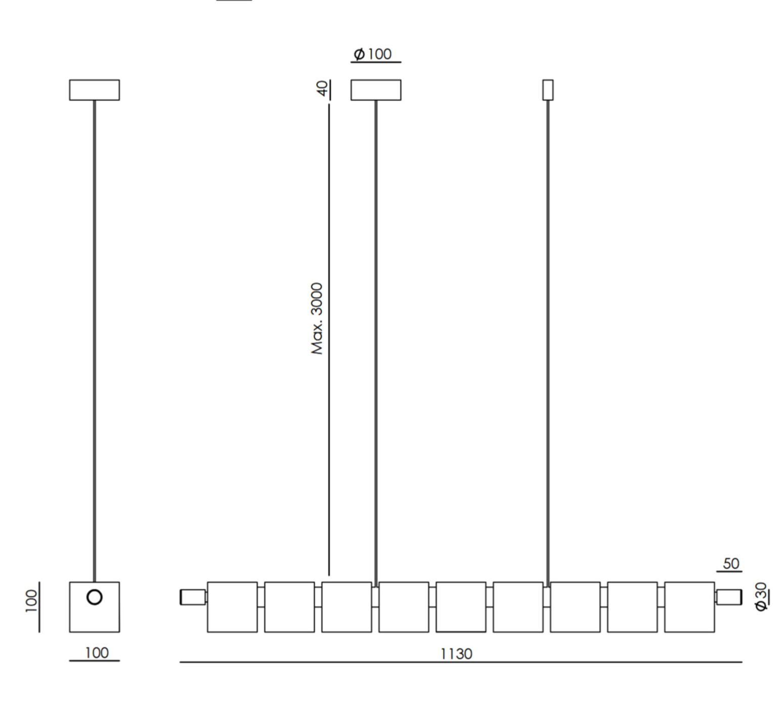La suspension Cubic L intègre une source LED de 35W dimmable en triac délivrant 3000 lm en 2700K pour un éclairage direct efficace. La suspension mesure 113 cm de longueur et 10 cm de hauteur. Elle est fournie avec une rosace et un câble noir de 3 m pour faciliter l'installation.