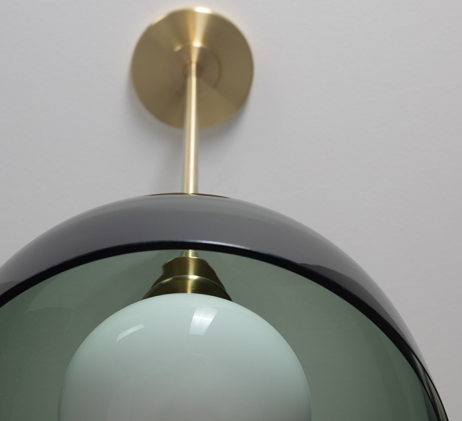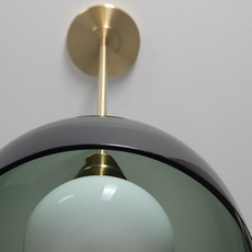 Elle présente une forme demi-sphérique élégante en verre fumé avec une sphère blanche, sublimée par des détails en laiton brossé, qui lui confèrent une esthétique graphique et sophistiquée. Son design équilibré en fait un choix idéal au-dessus d’une table, dans une entrée ou en composition multiple dans un séjour, où elle apporte une touche décorative forte tout en restant intemporelle.