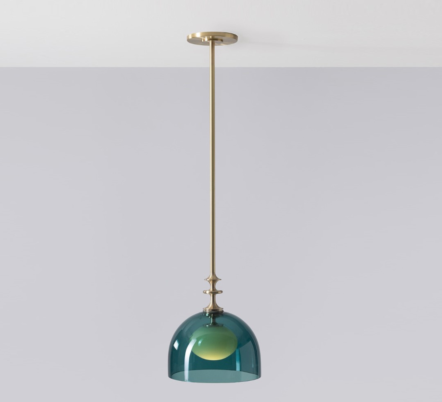 Suspension, Elizabeth I Profil 3, vert sapin et vert pastel, laiton brossé, Ø23cm, H25cm - SkLO Studio