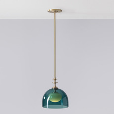 Elle présente une forme demi-sphérique élégante en verre vert sapin avec une sphère vert pastel, sublimée par des détails en laiton brossé, qui lui confèrent une esthétique graphique et sophistiquée. Son design équilibré en fait un choix idéal au-dessus d’une table, dans une entrée ou en composition multiple dans un séjour, où elle apporte une touche décorative forte tout en restant intemporelle.