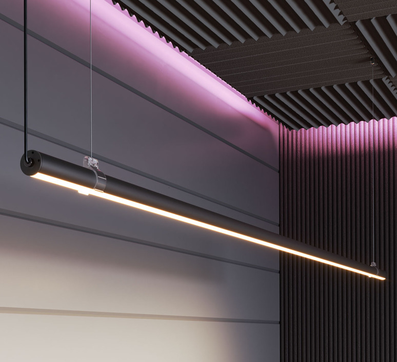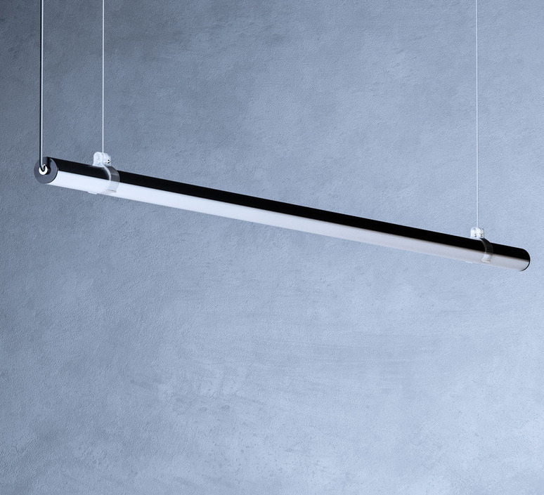 Suspension, Grip, Noir, verre opal, LED, dim, CCT 2700-6500K, 4600 lm, Ø2,8cm, H197cm - Beneito Faure