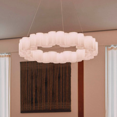 La collection Honey joue sur la répétition d'un élément modulaire, créant des configurations linéaires ou circulaires fascinantes. Les modules en polycarbonate blanc brillant moulé par injection forment une structure harmonieuse. La lumière chaude est diffusée à la fois directement et indirectement, créant un éclairage doux et chaleureux dans la pièce. Les opales ondulées tamisent la lumière, ajoutant des nuances fascinantes à l'ambiance.